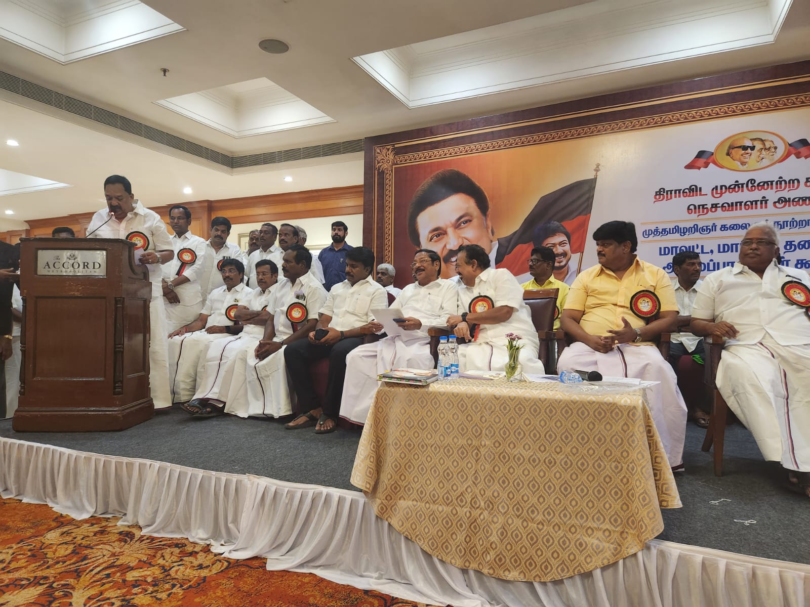 சென்னை கலைஞர் நூற்றாண்டு விழா கொண்டாடுவது குறித்து மாநில திமுக நெசவாளர் அணி ஆலோசனைக் கூட்டம் சென்னை தி.நகரில் உள்ள அக்காடு ஹோட்டலில் மாநில நெசவாளர் அணித் தலைவர் நன்னியூர் ராஜேந்திரன் தலைமையில், அணி செயலாளர்கள், மற்றும் துணைச் செயலாளர்கள் ஆகியோர் முன்னிலையில் நடைபெற்றது மாநில துணைத்தலைவர் நாகலிங்கம் வரவேற்புரையாற்றினார்.