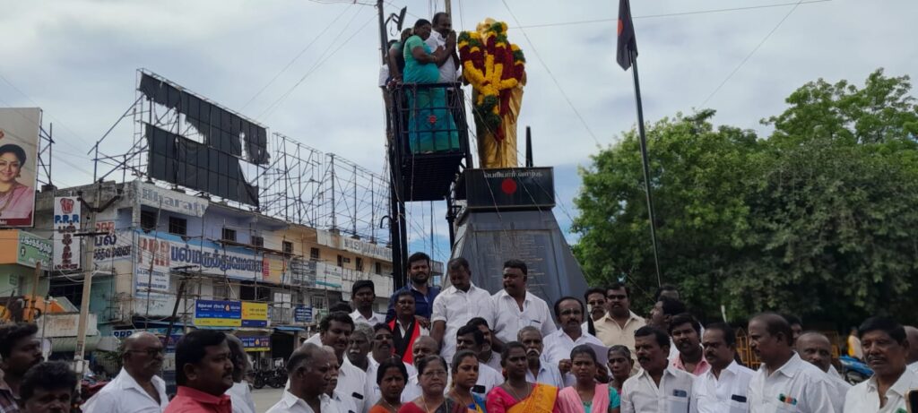 பெரியார் 145வது பிறந்தநாளை யொட்டி வடக்கு மாவட்ட திமுக சார்பில் தென்பாகம் காவல் நிலையம் அருகிலுள்ள பெரியார் சிலைக்கு மேயர் ஜெகன் பெரியசாமி மாலை அணிவித்து மரியாதை செலுத்தினார். பின்னர் உறுதிமொழி எடுத்துக் கொண்டார்.