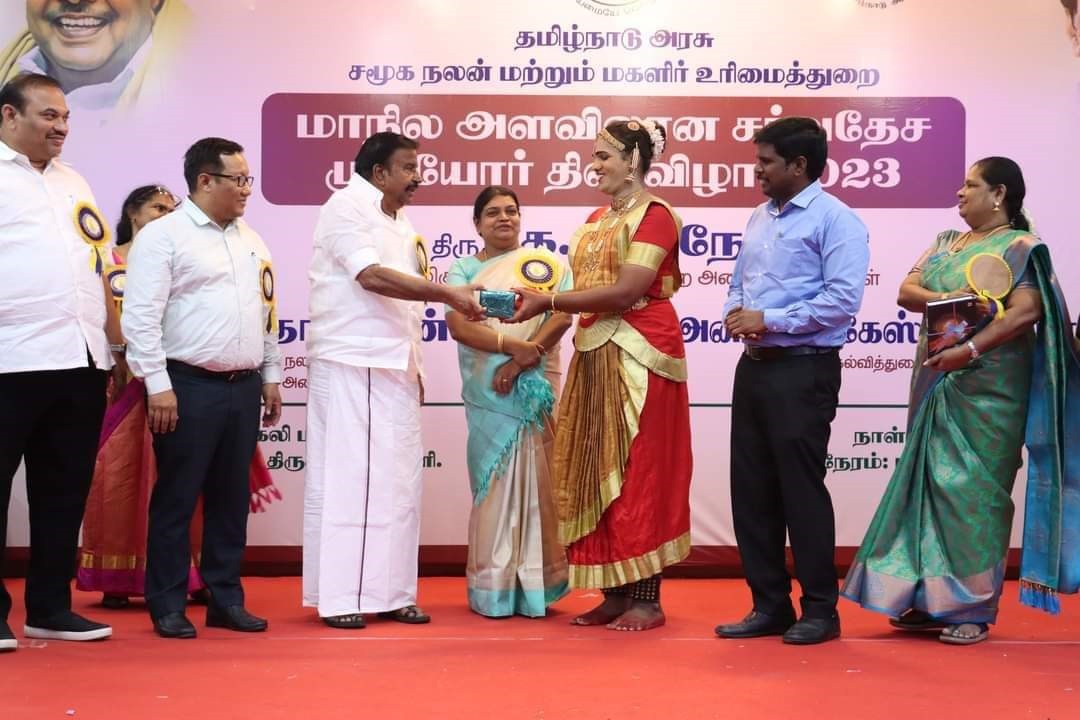 தமிழ்நாடு அரசின் சமூக நலன் மற்றும் மகளிர் உரிமைத்துறை சார்பில் திருச்சி தனியார் மண்டபத்தில், சர்வதேச முதியோர் தின விழாவை முன்னிட்டு நடைபெற்ற போட்டிகளில் வெற்றி பெற்ற மாணவிகளுக்கு தூத்துக்குடி வடக்கு மாவட்ட திமுக செயலாளரும் சமூகநலன் மற்றும் மகளிர் உரிமைத்துறை அமைச்சர் கீதாஜீவன் பரிசுகள் வழங்கினார்.