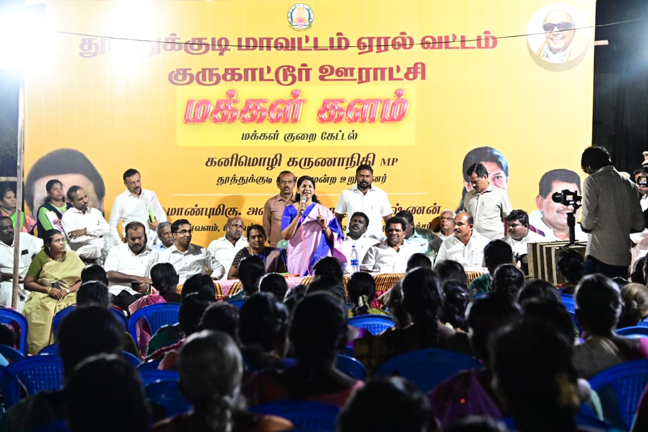 தூத்துக்குடி மாவட்டம் ஆழ்வார்திருநகரி ஊராட்சி ஒன்றியத்தில் உள்ள குருகாட்டூர் ஊராட்சியில், திமுக துணைப் பொதுச் செயலாளரும்,தூத்துக்குடி நாடாளுமன்ற உறுப்பினருமான கனிமொழி கருணாநிதி தலைமையில் (13/09/2023) அன்று ‘மக்கள் களம்’ மக்கள் குறை கேட்டல் நிகழ்ச்சி நடைபெற்றது.