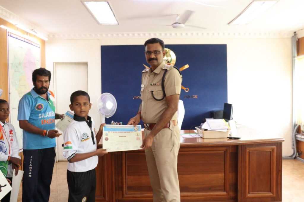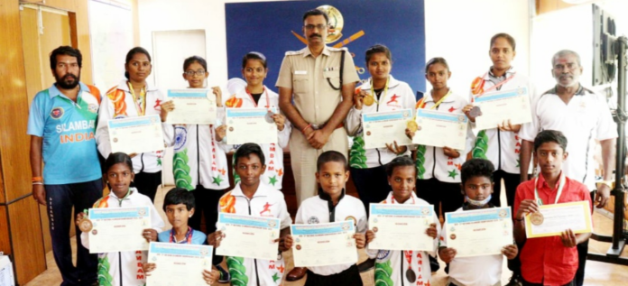 அகில இந்திய சிலம்பம் சம்மேளனம் நடத்திய 17வது தேசிய சாம்பியன் போட்டியில் தமிழ்நாடு சார்பாக கலந்து கொண்டு வெற்றி பெற்ற கோவில்பட்டியை சேர்ந்த மாணவ மாணவிகளுக்கு தூத்துக்குடி மாவட்ட போலீஸ் சூப்பிரண்டு எஸ்.ஜெயக்குமார் பாராட்டு.