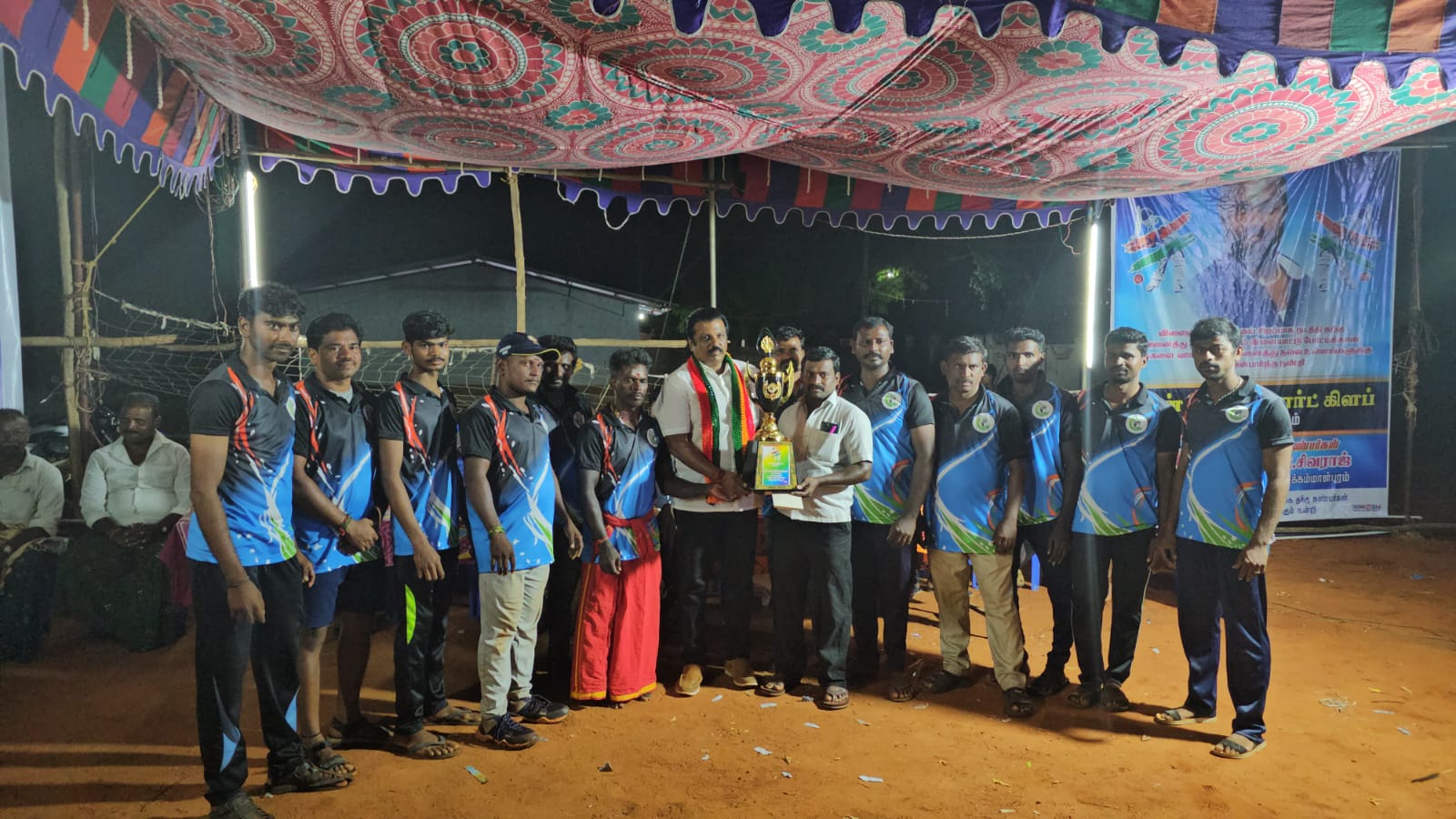 உரிமையாளர் யோபு சாலமன் வழங்கினார். இந்த நிலையில் கிரிக்கெட் போட்டியில் வெற்றி பெற்ற அணிக்கு 10000 பரிசுத்தொகை மற்றும் கோப்பையை பெருந்தலைவர் மக்கள் கட்சி மற்றும் தமிழ்நாடு நாடார் பேரவை தூத்துக்குடி மாவட்ட செயலாளர் தொழிலதிபர் எஸ் பி மாரியப்பன் வழங்கி வெற்றி பெற்ற அணியை வாழ்த்தி பாராட்டினார். அவருடன் பெருந்தலைவர் மக்கள் கட்சி மாவட்ட பொருளாளர் மில்லை தேவராஜ், மற்றும் நிர்வாகிகள் சரவணன், ராஜ், தினேஷ், வின்சென்ட், அருண், கதிர், பெத்து விஷ்ணு, ரஞ்சித், அலாட் குமார், மற்றும் நிர்வாகிகள் பலர் உடன் இருந்தனர்