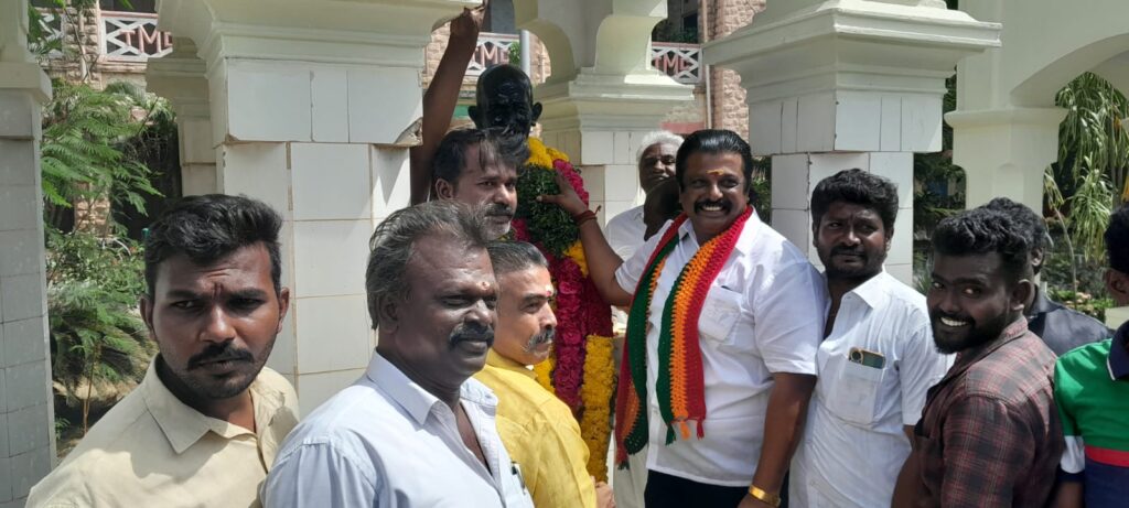 பெருந்தலைவர் மக்கள் கட்சி தூத்துக்குடி மாவட்ட செயலாளர் எஸ் பி மாரியப்பன் தலைமையில் நிர்வாகிகள் தூத்துக்குடி மாநகராட்சி வளாகத்தில் அமைந்துள்ள காமராஜர் மற்றும் காந்தி சிலைகளுக்கு