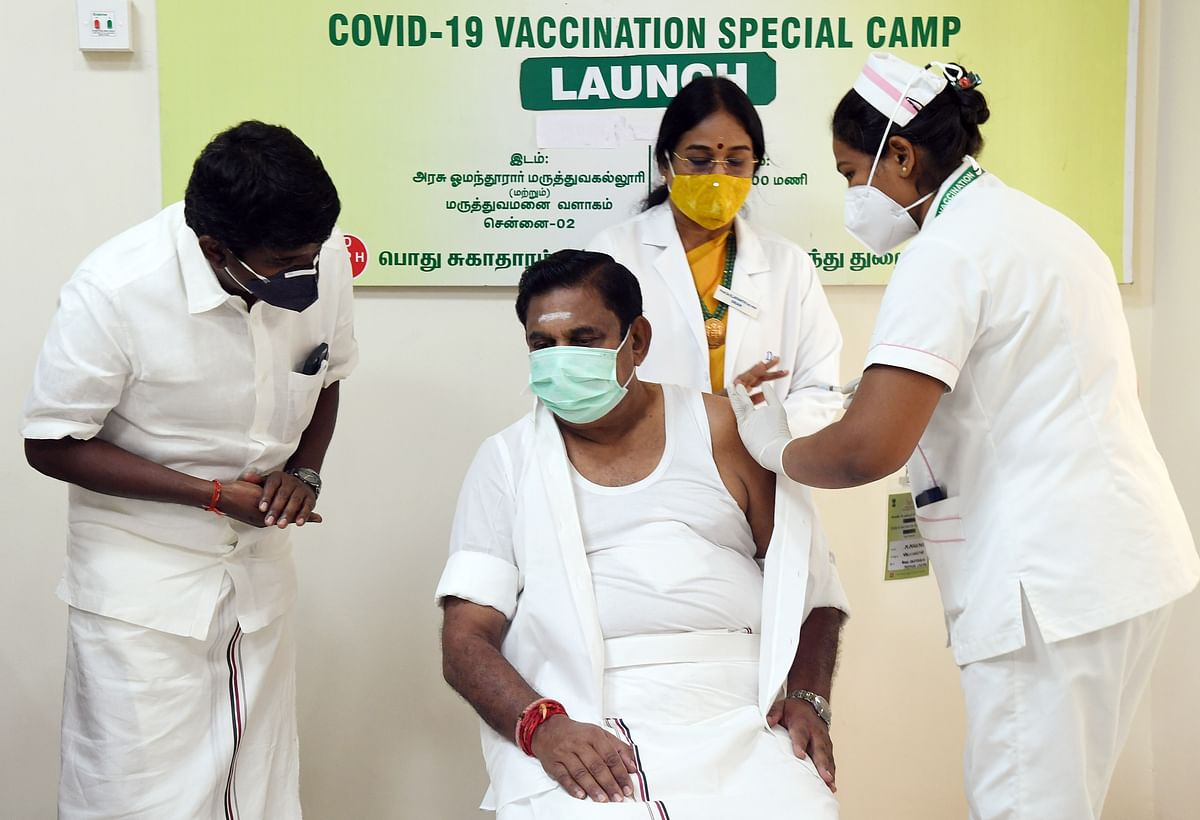 ஓமந்தூரார் அரசு மருத்துவமனையில் தமிழக முதல்-அமைச்சர் எடப்பாடி பழனிசாமி நேற்று தடுப்பூசி போட்டுக்கொண்டார்.