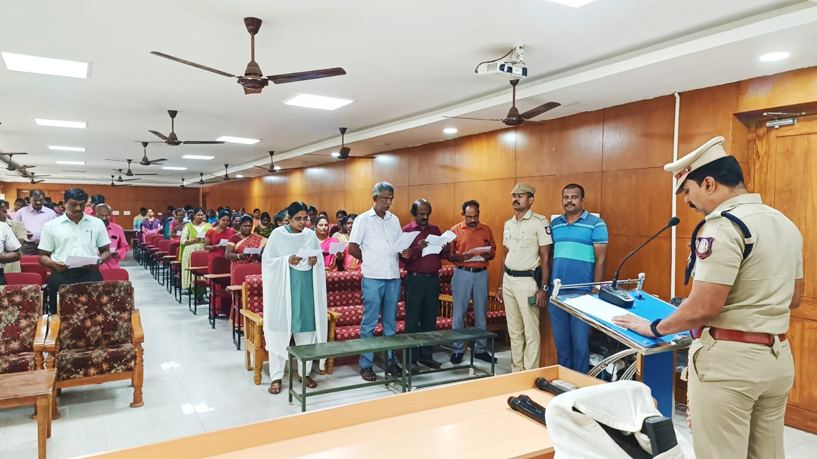 இந்த உறுதிமொழியில் மாவட்ட குற்ற பிரிவு காவல் ஆய்வாளர் அந்தோணியம்மாள் உட்பட காவல்துறையினர் மற்றும் மாவட்ட காவல்துறை அலுவலக நிர்வாக அதிகாரிகள் குமார், ராமசுப்பிரமணிய பெருமாள், அலுவலக கண்காணிப்பாளர்கள், உதவியாளர்கள், இளநிலை உதவியாளர்கள், அலுவலக உதவியாளர்கள் பலர் கலந்து கொண்டனர்.