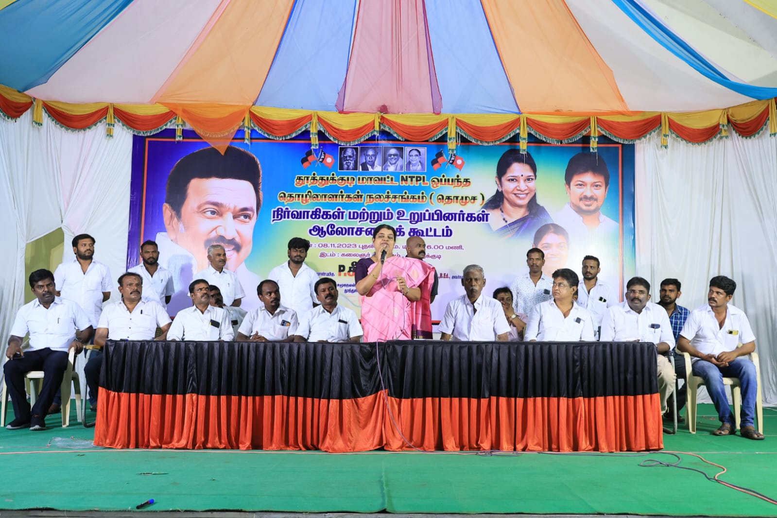 தூத்துக்குடி மாவட்ட என்.டி.பி.எல் ஒப்பந்த தொழிலாளர்கள் நலச்சங்கம் தொ.மு.ச. நிர்வாகிகள் மற்றும் உறுப்பினர்கள் ஆலோசனை கூட்டம் மாவட்ட என்.டி.பி.எல் ஒப்பந்த தொழிலாளர்கள் நலச்சங்கம் தொ.மு.ச. மாவட்ட ஒருங்கிணைப்பாளரும், வடக்கு மாவட்ட திமுக பொறியாளர் அணி அமைப்பாளருமான அன்பழகன் தலைமை வகித்தார்.