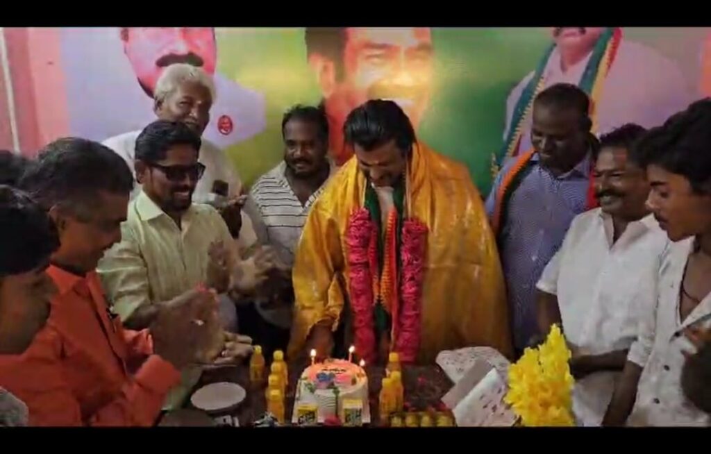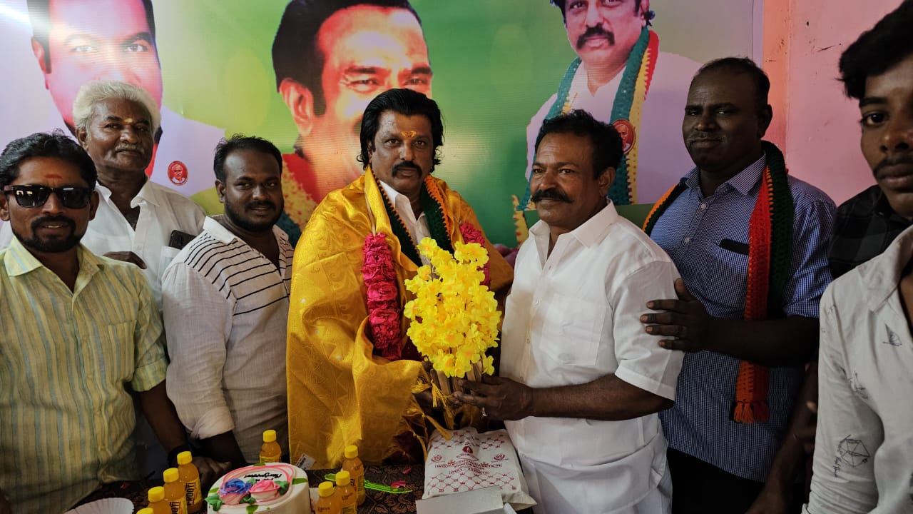 அலுவலகத்தில் கேக் வெட்டினார். பின்னர் நிர்வாகிகள், தொண்டர்கள்,