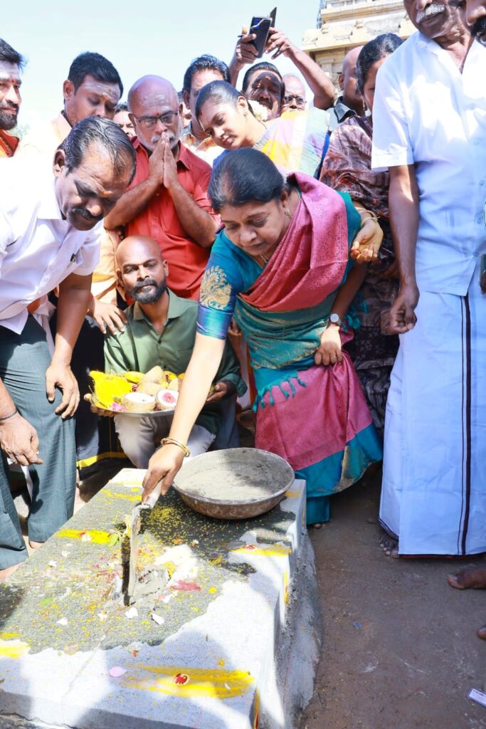 தற்போது பெருமாள் கோவிலில் பல்வேறு பணிகள் நடைபெற்று வருவதை வடக்கு மாவட்ட திமுக செயலாளரும், சமூக நலன் மற்றும் பெண்கள் உரிமைத்துறை அமைச்சர் கீதாஜீவன் நேரில் பார்வையிட்டு, சாமி தரிசனம் செய்து, கல் மண்டபத்திற்கான கல் தூண் நிறுவும் பணியை துவக்கி வைத்து, பின்னர் ஸ்ரீதேவி, பூதேவி, ஆண்டாள் ஆகிய கோவில் கட்டுமானப் பணியையும் தொடங்கி வைத்தார்.