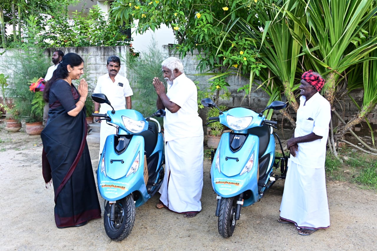 தூத்துக்குடி மாநகராட்சி பகுதியில் உள்ள குறிஞ்சி நகர் நாடாளுமன்ற உறுப்பினர் அலுவலகத்தில், திமுக துணைப் பொதுச் செயலாளரும், தூத்துக்குடி நாடாளுமன்ற உறுப்பினருமான கனிமொழி கருணாநிதி மாற்றுத்திறனாளிகளான சாத்தான்குளம் வட்டம், கோமநேரி திமுக கிளைச் செயலாளர் நல்லகண் மற்றும் கோவில்பட்டி வட்டம், நாலாட்டின்புதூர் திமுக கிளைச் செயலாளர் முத்துராமலிங்கம் ஆகியோருக்கு தனது சொந்த செலவிலிருந்து ரூ.1,81.000 மதிப்பிலான மூன்று சக்கர வாகனத்தை கனிமொழி எம்.பி வழங்கினார். சண்முகையா எம்.எல்.ஏ உடனிருந்தார்.