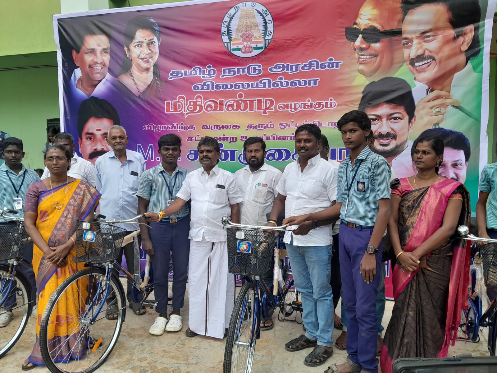 33 மாணவர்களுக்கு விலையில்லா சைக்கிள் வழங்கி ஓட்டப்பிடாரம் சட்டமன்ற உறுப்பினர் சண்முகையா பேசுகையில் தமிழக முதலமைச்சர் ஸ்டாலின் ஆணைக்கிணங்க பள்ளி மாணவ மாணவிகளுக்கு விலையில்லா சைக்கிள் வழங்கப்படுகிறது. தமிழக முதலமைச்சர் கல்வித்துறையும், மருத்துவத்துறையும் எனக்கு இரு கண்கள் என்று கருதி, அதற்கு முக்கியத்துவம் கொடுத்து வருகிறார். அதுமட்டுமின்றி பள்ளிக் கட்டிடம் மற்றும் கட்டமைப்பு பணிகளையும் முறைப்படுத்தி கல்விக்கு முக்கியத்துவம் அளிக்கிறார். நீங்கள் காலை மற்றும் மாலை நேரங்களில் சைக்கிளில் வரும்போது உங்களுக்கு ஆரோக்கியம் கிடைக்கும். நடைபயிற்சி முக்கியம் என்பதைப்போல் சைக்கிளும் நமக்கு முக்கியமாக விளங்குகிறது. நீங்கள் நன்றாக படிக்க வேண்டும். படிக்கும் காலத்திலேயே எதிர்காலத்தில் எந்த இலக்கை அடைய வேண்டும் என்ற எண்ணத்தை உருவாக்கி அதன் அடிப்படையில் பயணிக்க வேண்டும். உங்கள் தாய் தந்தையர் எவ்வளவு சிரமப்பட்டு உங்களை படிக்க வைக்கிறார்கள் என்பதை உணர்ந்து எதிர்காலத்தில் ஐ.ஏ.எஸ், ஐ.பி.எஸ் நீதிபதி, பொறியாளர், மருத்துவர் என்ற இலக்கை அடைய வேண்டும். கடமைக்கு படிக்காமல் கடமை உணர்வோடு படித்து முன்னேறி வீட்டிற்கும் நாட்டிற்கும் பெருமை சேர்க்க வேண்டும். ஒவ்வொரு படிப்பிலும் அதிக மதிப்பெண் எடுத்து நல்ல பழக்க வழக்க ஒழுக்கத்துடன் வளர வேண்டும். நல்ல ஆரோக்கிய உடலுடன் எல்லா செல்வங்களையும் பெற வேண்டும் என்று அனைவரையும் வாழ்த்துகிறேன் என்று பேசினார்.