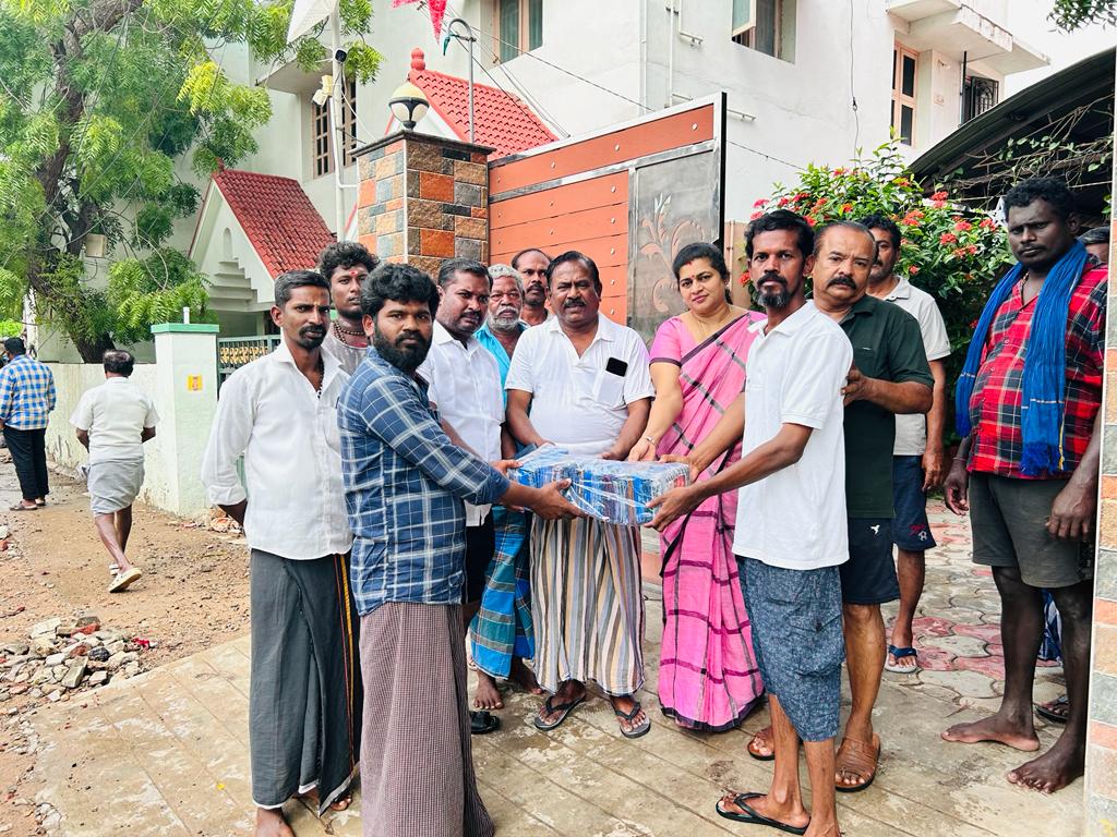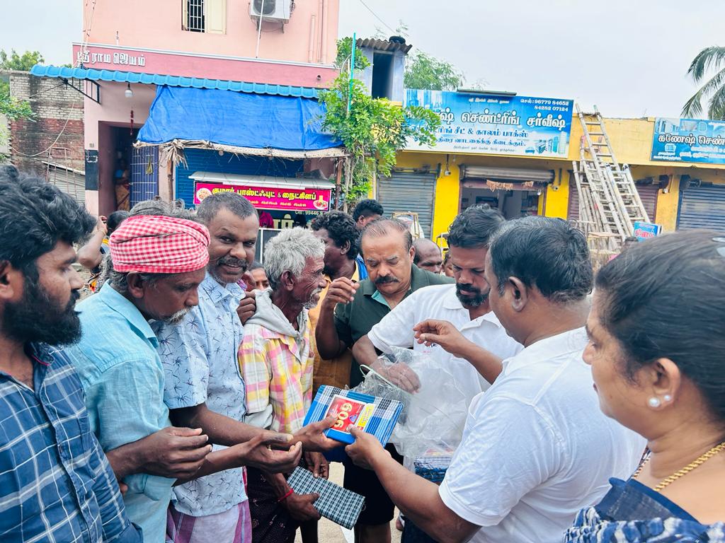 தூத்துக்குடி தொகுதியில் பாதிக்கப்பட்ட பல்வேறு பகுதிகளை பார்வையிட்டு ஸ்டேட் பாங்க் காலணி, ஆதிபராசக்திநகர், சிதம்பரநகர், அண்ணாநகர், மகிழ்ச்சிபுரம் உள்ளிட்ட அனைத்து பகுதிகளுக்கும் கடந்த 4 நாட்களாக வீட்டில் பணியாளர்கள் மூலம் அண்டாவில் சமையல் செய்து சாம்பார் சாதம், லெமன்சாதம், தக்காளிசாதம், உள்ளிட்ட 4 ஆயிரம் உணவு பொட்டலங்கள் வரை தயாரித்து 4 நாளில் 16 ஆயிரம் பேருக்கு உணவு பொட்டலம், போர்வை, பாய், லுங்கி, துண்டு, பிஸ்கட், தண்ணீர்பாட்டில், உள்ளிட்ட பொருட்களை வழங்கி வருகிறார். பாதிப்பு நீங்கும் வரை தொடர்ச்சியாக இவை வழங்கப்படும் என்று அதிமுக மாநில வர்த்தக அணி செயலாளர் சி.த.செல்லப்பாண்டியன் தெரிவித்தார்.