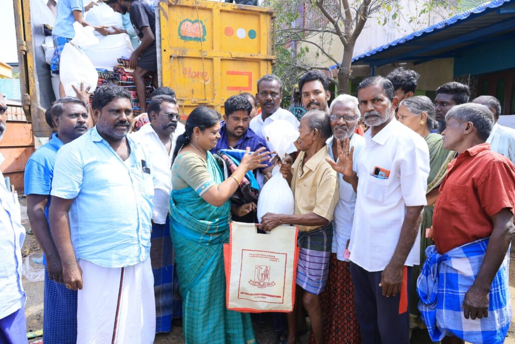 பின்னர் தபால் தந்தி காலணி, இந்திராநகர், திருவிகநகர் பகுதியில் உள்ளவர்களுக்கு தேவையான உணவுகள் போர்வைகள் உள்ளிட்ட அத்தியாவசிய பொருட்களை வழங்கினார்.