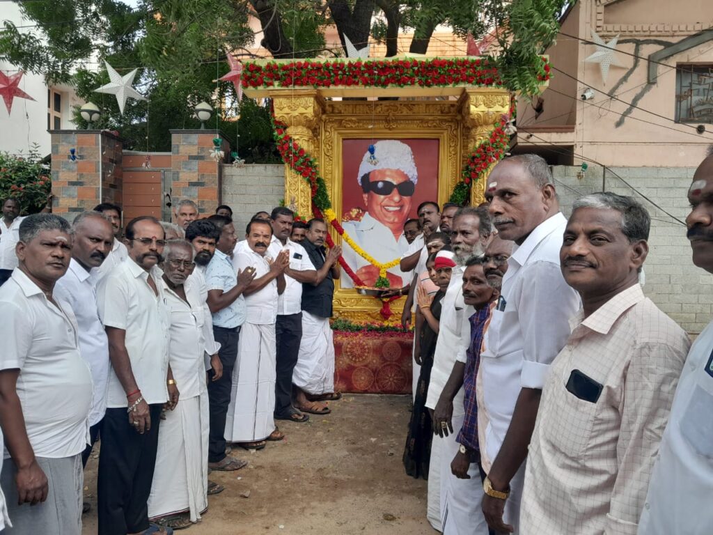 தூத்துக்குடி மறைந்த அதிமுக முன்னாள் முதல்வர் எம்.ஜி.ஆர் நினைவு 36வது தினத்தை முன்னிட்டு அதிமுக மாநில வர்த்தக அணி செயலாளர் சி.த.செல்லப்பாண்டியன் தலைமையில் டூவிபுரத்தில் உள்ள அவரது இல்லம் முன்பு எம்.ஜி.ஆரின் அலங்கரிக்கப்பட்ட படத்திற்கு மலர் தூவி மரியாதை செலுத்தினார்.