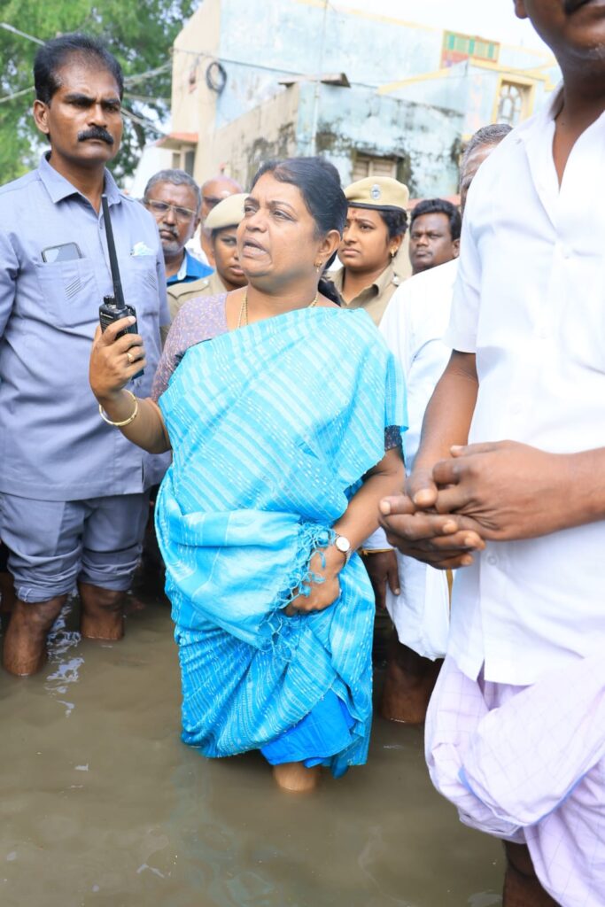 இந்நிலையில் முத்தையாபுரம் கிழக்கு, முஸ்ஸீம் தெரு, கேஎஸ்கே காம்பவுண்டு எதிர்புறம் உள்ளிட்ட பகுதிகளில் தேங்கியிருக்கும் வெள்ளநீரால் ஏற்பட்டுள்ள பாதிப்புகளையும், தூத்துக்குடி போல்பேட்டை கிழக்கு மற்றும் கணேசநகர் பகுதியில் உள்ள தேவாலயம் உள்ளிட்ட பகுதிகளில் தேங்கி நின்ற வெள்ளநீரை வெளியேற்றும் பணியையும் வடக்கு மாவட்ட திமுக செயலாளரும் சமூகநலன் மற்றும் பெண்கள் உரிமைத்துறை அமைச்சர் கீதாஜீவன் நேரில் ஆய்வு மேற்கொண்டு குறைகளை கேட்டறிந்து அப்பகுதியில் தேங்கியுள்ள மழைநீரை பக்கிள் ஓடை மற்றும் கால்வாய் பகுதிகளுக்கு செல்லும் வகையில் தேவையான இடங்களில் சாலைகள் தோண்டப்பட்டு கால்வாய் அமைத்து தேங்கியுள்ள மழைநீரை மோட்டர் பம்ப் மூலம் வெளியேற்றப்பட்டு வருகிறது என்றார்.