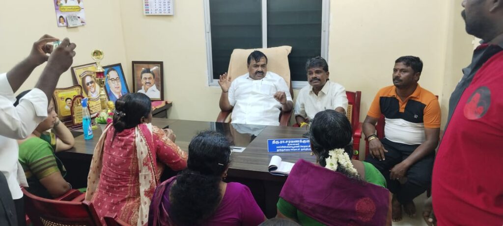 இதனையடுத்து கனிமொழி எம்.பி, தெற்கு மாவட்ட திமுக செயலாளரும், மீன்வளம் மற்றும் மீனவர் நலன், கால்நடை பராமரிப்புத்துறை அமைச்சர் அனிதா ராதாகிருஷ்ணன் நிவாரணப் பொருட்களை அனைத்துப் பகுதிகளுக்கும் வழங்கியுள்ள நிலையில் பிற்படுத்தப்பட்டோர் மற்றும் உயர்கல்வித்துறை அமைச்சர் ராஜகண்ணப்பன், ஓட்டப்பிடாரம் எம்எல்ஏ சண்முகையா ஆகியோர் மாப்பிள்ளையூரணி ஊராட்சி மன்ற அலுவலகத்தில் அதிகாரிகளுடன் இப்பகுதியை முழுமையாக மீட்டெடுப்பது குறித்து நடைபெற்ற ஆலோனையின் போது, ராஜகண்ணப்பன் பேசுகையில்: எதிர்பார்த்ததை விட அதிக அளவில் மழை பெய்ததால் பாதிப்புகள் அதிகம் ஏற்பட்டுள்ளது. இப்பகுதில் ஏற்கனவே தமிழக முதலமைச்சர் ஸ்டாலின் உத்தரவுபடி பல்வேறு கட்டப்பணிகள் நடைபெற்று வருகின்றன. இதற்கிடையில் முதலமைச்சரும் தூத்துக்குடிக்கு வருகை தந்து பாதிக்கப்பட்ட பகுதிகளை பார்வையிட்டு நிவராண உதவிகளை வழங்கினார். மாப்பிள்ளையூரணி ஊராட்சி பகுதி முழுவதிலும் எடுக்கப்பட்ட நடவடிக்கைகள் குறித்து ஆலோசிக்கப்பட்டது. பல பகுதிகளில் சிறிய மோட்டர்கள் அப்புறப்படுத்தப்பட்டு பெரிய மோட்டார்கள் மூலம் தண்ணீரை வெளியேற்றுவதற்கான பணிகளை முழுமையாக செய்வதற்கு அனைத்து ஊராட்சி மன்ற உறுப்பினர்களும் கிளைச் செயலாளர்களும் முழுமையாக ஒத்துழைக்க வேண்டும். தங்களது பகுதிகளில் என்ன தேவை என்பதை உடனுக்குடன் தகவல் தெரிவிக்க வேண்டும். அதன்படி பொதுமக்களுக்கு தேவையான நிவாரண உதவிகள், உணவுகள் உள்ளிட்ட அனைத்து அடிப்படை உதவிகளையும் முழுமையாக செய்து கொடுப்பதற்கு இந்த அரசு தயாராக உள்ளது. அதிகாரிகளும் முழுவீச்சில் பணிகளை மேற்கொண்டு விரைவாக மக்கள் சகஜ நிலைக்கு வருவதற்கான பணிகளை தொடர வேண்டும் என்று கேட்டுக்கொண்டார்.