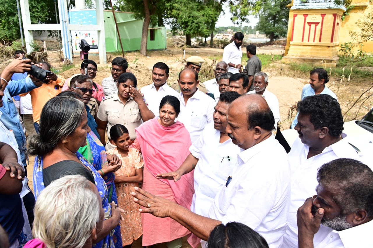 தூத்துக்குடி மாவட்டம், திருச்செந்தூர் அருகில் தாமிரபரணி ஆற்றையொட்டி அமைந்திருக்கும் மேலாத்தூர் – சொக்கப்பழங்கரை ஊராட்சியில் திமுக துணைப் பொதுச் செயலாளரும், தூத்துக்குடி நாடாளுமன்ற உறுப்பினருமான கனிமொழி கருணாநிதி மழை வெள்ளத்தினால் பாதிக்கப்பட்ட பகுதிகளைப் பார்வையிட்டு, ஆய்வு செய்தார். அப்பகுதி மக்களிடம் வெள்ள பாதிப்புகள் குறித்துக் கேட்டறிந்தார். கிராமத்தில் வசித்து வரும் மக்கள் வெள்ளத்தால் தங்களது வாழ்வாதாரத்தை இழந்து உள்ளதாகத் தெரிவித்தனர். இந்த கிராமத்தில் சுமார் 250 குடும்பங்கள் இருக்கும் நிலையில் 500க்கும் மேற்பட்ட மக்கள் வசித்து வருகின்றனர்.