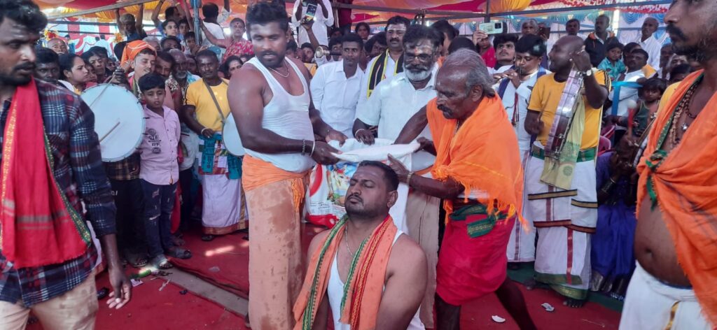 சுவாமிகளுக்குச் சிறப்பு பூஜைகள் செய்யப்பட்டு தலைமேல் தேங்காய்கள் உடைக்கும் விநோத திருவிழா நடத்தப்பட்டது. இதில் சிறுவர்கள் முதல் பெரியவர்கள் வரை தேங்காய்களை தலைமேல் உடைத்து நேர்த்திக்கடன் செலுத்தி கொண்டனர்.