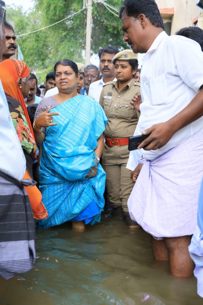 இந்நிலையில், வடக்கு மாவட்ட திமுகவிற்கு உட்பட்ட தூத்துக்குடி, கோவில்பட்டி, விளாத்திகுளம் ஆகிய 3 தொகுதிகளிலும், மழை வெள்ளத்தால் பாதிக்கப்பட்;ட பகுதிகளை பார்வையிட்டு வடக்கு மாவட்ட திமுக செயலாளரும், சமூக நலன் மற்றும் பெண்கள் உரிமைத்துறை அமைச்சர் கீதாஜீவன் மேற்கொள்ள வேண்டிய பணிகளை அதிகாரிகளுடன் இணைந்து, அவ்வப்போது செய்த பணிகளை தமிழக முதலமைச்சருக்கு தெரிவித்து, சட்டமன்ற உறுப்பினர்கள், நகர்மன்ற தலைவர், உள்ளாட்சி பிரதிநிதிகள் ஆகியோரை உடனடியாக களமிறங்கச் செய்து உரிய ஆலோசனைகள் வழங்கி பணியாற்றினார்.