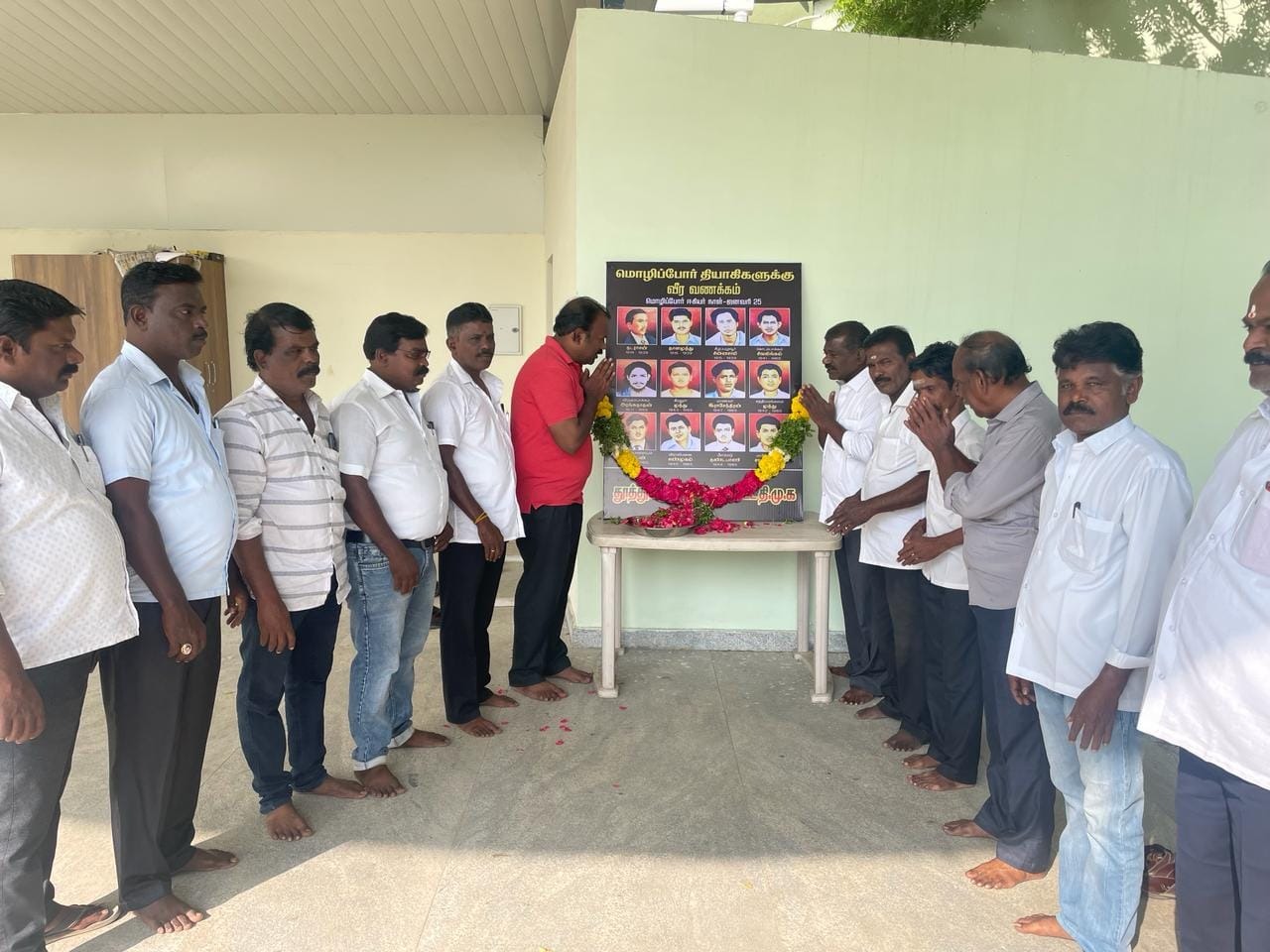 தமிழ் மொழி காக்க இன்னுயிர் நீத்த மொழிப்போர் தியாகிகளுக்கு வீரவணக்கநாள் அஞ்சலி செலுத்தும் நிகழ்ச்சி போல்பேட்டையில் தமிழ் மொழி காக்க இன்னுயிர் நீத்த தியாகிகள் படத்திற்கு தலைமை செயற்குழு உறுப்பினரும் மாநகராட்சி மேயருமான ஜெகன் பெரியசாமி மலர் தூவி மரியாதை செலுத்தினார்.