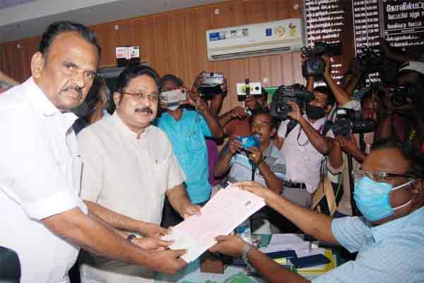 கோவில்பட்டி சட்டமன்ற தொகுதியில் அமமுக வேட்பாளர் டி.டி.வி.தினகரன் வேட்புமனுத் தாக்கல் செய்தார்.