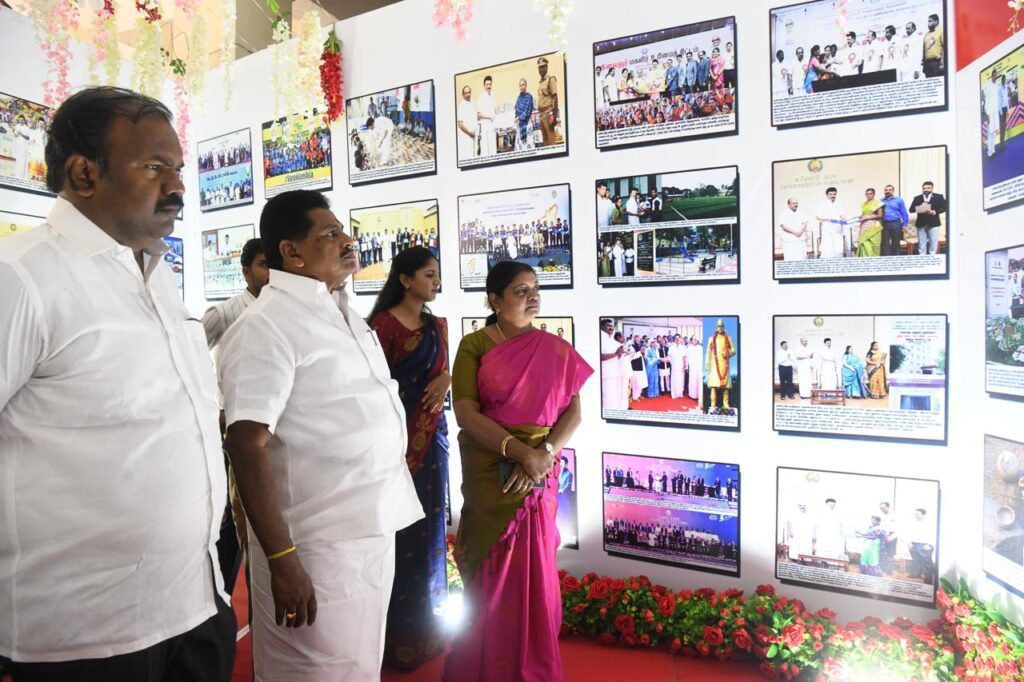 தூத்துக்குடி மாநகராட்சி ஸ்மார்ட் சிட்டி பேருந்து நிலையத்தில் செய்தி மக்கள் தொடர்புத்துறை சார்பில் அமைக்கப்பட்டுள்ள தமிழ்நாடு அரசின் சாதனை விளக்க புகைப்படக் கண்காட்சியினை சமூக நலன் மற்றும் மகளிர் உரிமைத்துறை அமைச்சர் கீதா ஜீவன் மீன்வளம்-மீனவர் நலன் மற்றும் கால்நடை பராமரிப்புத்துறை அமைச்சர் அனிதா ஆர்.ராதாகிருஷ்ணன் ஆகியோர் இன்று 12.3.24 திறந்து வைத்து பார்வையிட்டனர்.