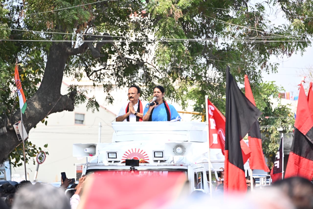 தமிழ்நாட்டில் ஏப்ரல் 19ம் தேதி நடைபெற உள்ள நாடாளுமன்றத் தேர்தலைத் தேர்தலையொட்டி, இந்தியா கூட்டணியின் சார்பில் கோயம்புத்தூர் நாடாளுமன்ற தொகுதியில் போட்டியிடும் திமுக வேட்பாளர் கணபதி ராஜ்குமார் ஆதரித்து, திமுக துணைப் பொதுச் செயலாளர் கனிமொழி கருணாநிதி தேர்தல் பிரச்சாரம் மேற்கொண்டார். கோயம்புத்தூர் நாடாளுமன்றத் தொகுதியில் உள்ள துடியலூர் சந்தை சந்திப்பு பகுதியில் கூடி நின்ற மக்களைச் சந்தித்து,உதயசூரியன் சின்னத்திற்கு வாக்கு அளிக்கப் பிரச்சாரம் செய்தார்.