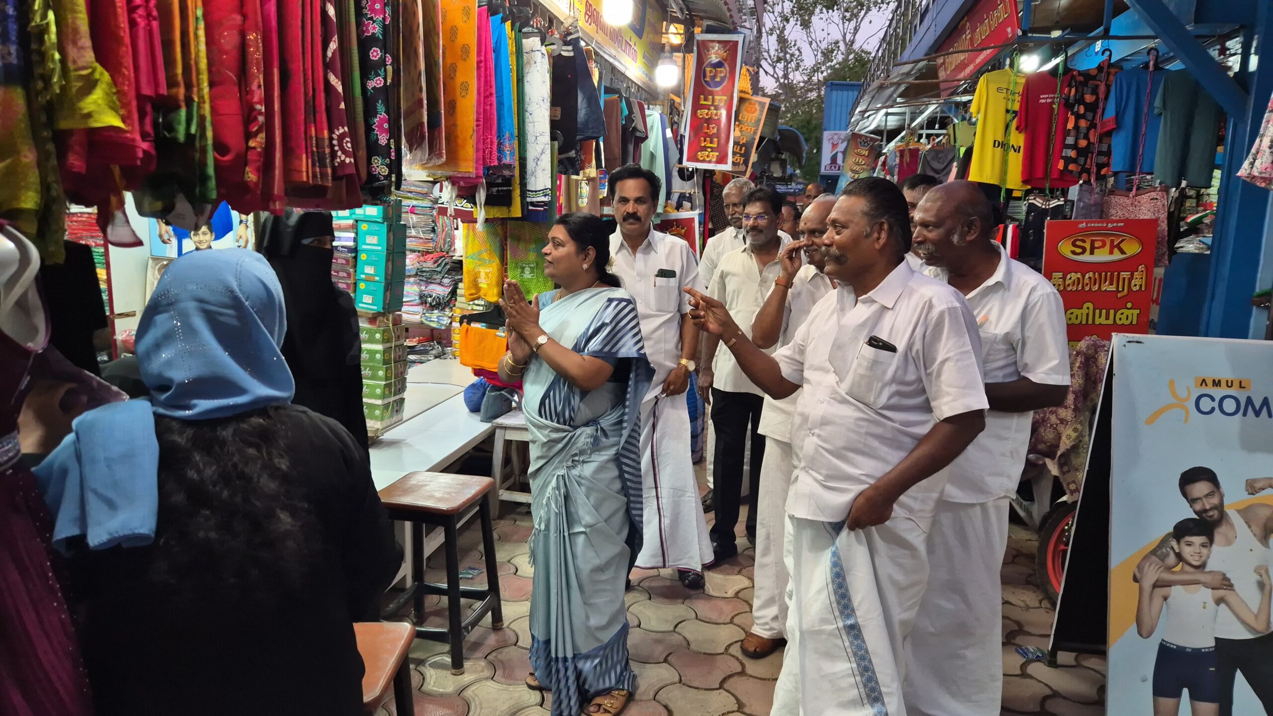 பாக்ஸ்: இந்தபகுதியில் கழிவுநீர் செல்லும் சாக்கடை பகுதியில் இருந்ததை முழுமையாக பழமையான கட்டிடங்களை இடித்து விட்டு புதிதாக ஸ்மார்ட் சிட்டி திட்டத்தின் கீழ் புதிய கடைகள் கட்டப்பட்டு அதை முறையாக வியாபாாிகளுக்கு வழங்கி எங்களுடைய வாழ்வாதரத்தை பாதுகாத்து எங்கள் நலன் முக்கியம் என்று எங்களுக்கு துணையாக இருந்து எல்லா உதவிகளையும் செய்து கொடுத்த அமைச்சருக்கு நன்றியை தொிவிக்கும் வகையில் வரும் தோ்தலில் கனிமொழிக்கு உதயசூாியன் சின்னத்தில் வாக்களிப்போம். என்று வியாபாாிகள் தொிவித்தனர்.