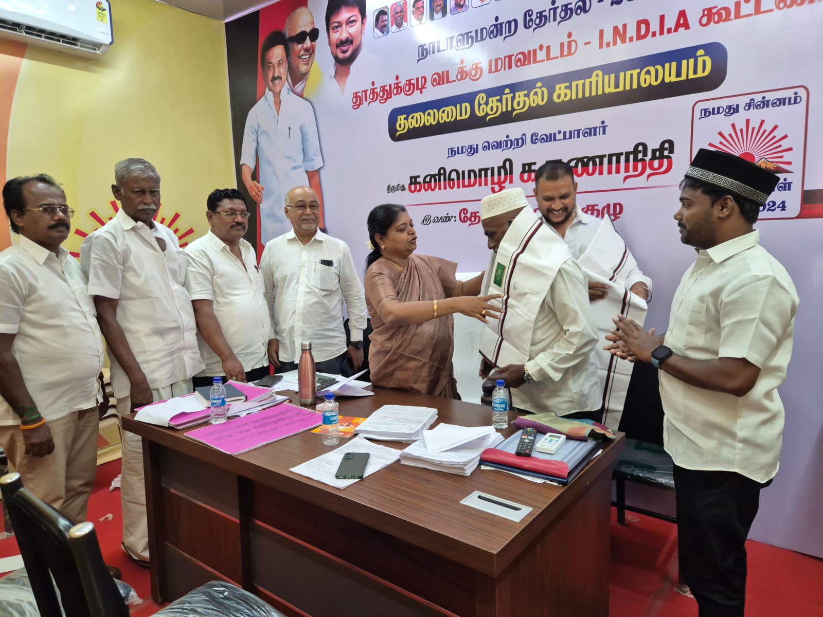நடைபெறவுள்ள நாடாளுமன்ற தோ்தலில் எஸ்டிபிஐ கட்சி அதிமுகவுடன் கூட்டணி அமைத்துள்ளது. அந்த கட்சிக்கு திண்டுக்கல் தொகுதி ஓதுக்கப்பட்டுள்ள நிலையில் அதிமுகவுடன் கூட்டணி அமைத்தற்க்கு எதிர்ப்பு தொிவித்து எட்டையாபுரம் சாலையில் உள்ள வடக்கு மாவட்ட திமுக சாா்பில் அமைக்கப்பட்டுள்ள இந்தியா கூட்டணி தலைமை ேதர்தல் காாியாலயத்தில் வடக்கு மாவட்ட திமுக செயலாளரும் சமூகநலன் மற்றும் மகளிர் உாிமைத்துறை அமைச்சருமான கீதாஜீவனை நோில் சந்தித்து அவரது முன்னிலையில் எஸ்டிபிஐ கட்சியிலிருந்து விலகி மாவட்ட செயலாளர் மின்னல் அம்ஜத், கிளைத்தலைவர் ஷாஜஹான், கட்டுமான அமைப்பு சாரா ெதாழிலாளர் நலச்சங்க தலைவர் காஜாமுபாரத், ஆகியோர் திமுக வில் இணைந்தனர். அனைவருக்கும் திமுக வேஷ்டி அணிவித்து வரவேற்ற அமைச்சர் வரும் நாடாளுமன்ற தோ்தலில் இந்தியா கூட்டணி கட்சியின் வெற்றிக்கு பணியாற்ற வேண்டும். என்று கேட்டுக்கொண்டார். அப்போது மாநகர திமுக செயலாளர் ஆனந்தசேகரன், இந்திய யூனியன் முஸ்ஸீம் லீக் மாவட்ட தலைவர் மீராசா, காங்கிரஸ் மாநில செயற்குழு உறுப்பினர் ஷாஜஹான், மாநகர் மாவட்ட காங்கிரஸ் தலைவர் முரளிதரன், முன்னாள் கவுன்சிலர் முகம்மது ஷாஜஹான், தேசிய வாத காங்கிரஸ் மாவட்ட தலைவர் செய்யது அலி, உடனிருந்தனர். முன்னாள் திமுக எம்.பி எஸ்.ஆர் ஜெயத்துரை, உள்பட பல்ேவறு சமூகநல அமைப்புகள் அமைச்சரை சந்தித்து தோ்தல் பிரச்சாரம் மேற்கொள்வது குறித்து கலந்துரையாடினார்.