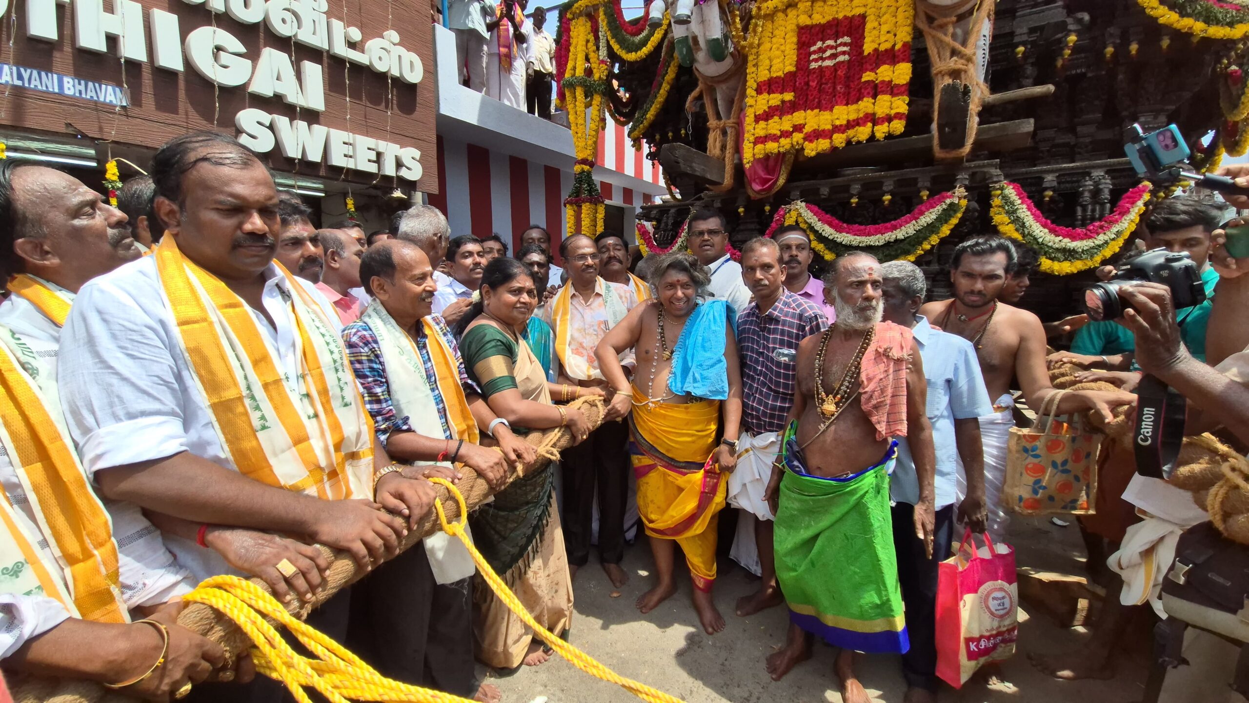 கீழ ரத வீதியில் இருந்து தொடங்கிய தேரோட்டத்தை வடக்கு மாவட்ட திமுக செயலாளரும் சமூகநலன் மற்றும் மகளிர் உாிமைத்துறை அமைச்சருமான கீதாஜீவன், மாநகராட்சி மேயர் ஜெகன் பெரியசாமி ஆகியோர் வடம் பிடித்து இழுத்து தொடங்கி வைத்தனர்.