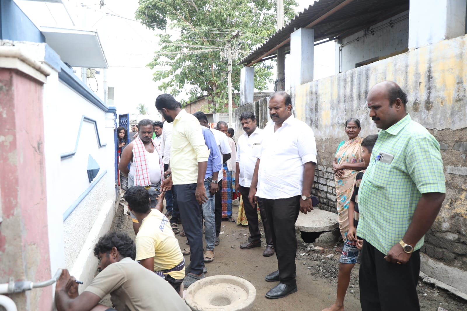 திமுக தலைவரும் முதலமைச்சருமான மு.க.ஸ்டாலின் உத்தரவுபடி மாநகராட்சிக்குட்பட்ட ஜெயலாணி தெரு பகுதி பொதுமக்கள் புதிய குடிநீர் குழாய் அமைத்து தரவேண்டும் என்று வைத்த கோாிக்கையை அடுத்து மாற்றும் பணியை துவக்கி வைத்து ஆய்வு மேற்கொண்டார்.