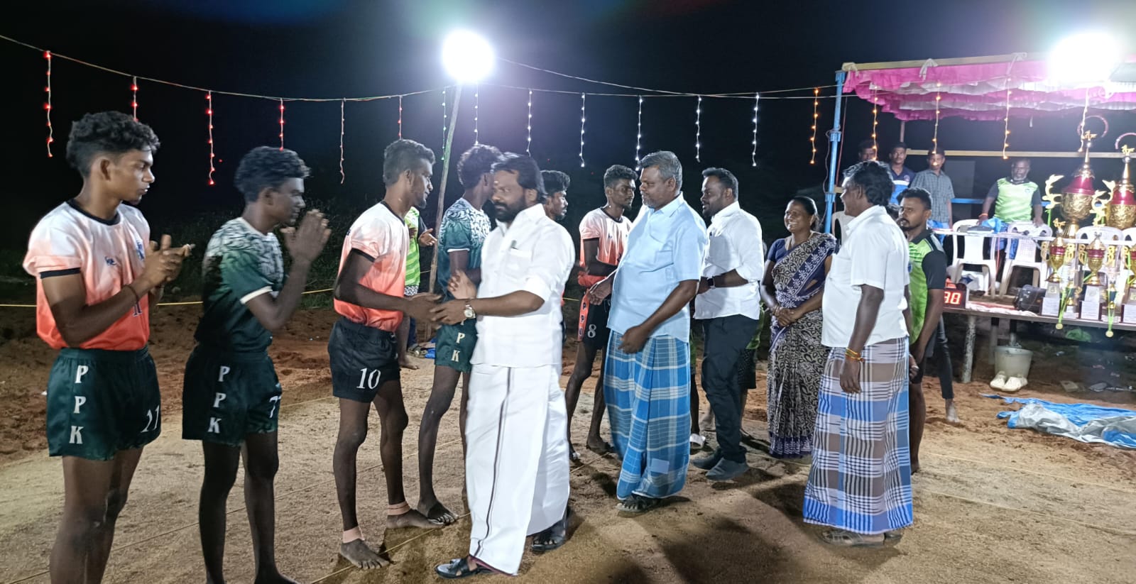 பகலிரவு ஆட்டமாக நடைபெற்ற கபாடிப் போட்டியின் இறுதி ஆட்டத்தை கீழமங்கலம் ஊராட்சி மன்றத் தலைவர் ஜெயக்கனி, கொடியன்குளம் ஊராட்சி மன்றத் தலைவர் அருண்குமார், கப்பிகுளம் கவுன்சிலர் அரிச்சந்திரன், அக்காநாயக்கன்பட்டி கவுன்சிலர் மணிகண்டன் ஆகியோர் முன்னிலையில் ஓட்டப்பிடாரம் ஒன்றியப் பெருந்தலைவர் வக்கீல் எல்.ரமேஷ் தொடங்கி வைத்தார்.