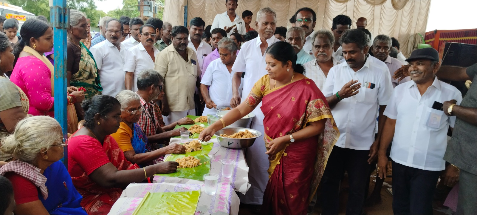 கலைஞர் படத்திற்கு மாியாதை செலுத்தி அங்கன்வாடியில் உள்ள குழந்தைகளுக்கு சீருடை வழங்கி பொதுமக்களுக்கு அசைவ விருந்துடன் முட்டை வழங்கி அன்னதானத்தை தொடங்கி வைத்து வடக்கு மாவட்ட திமுக செயலாளரும் சமூகநலன் மற்றும் மகளிர் உாிமைத்துறை அமைச்சர் கீதாஜீவன் கூறுகையில்