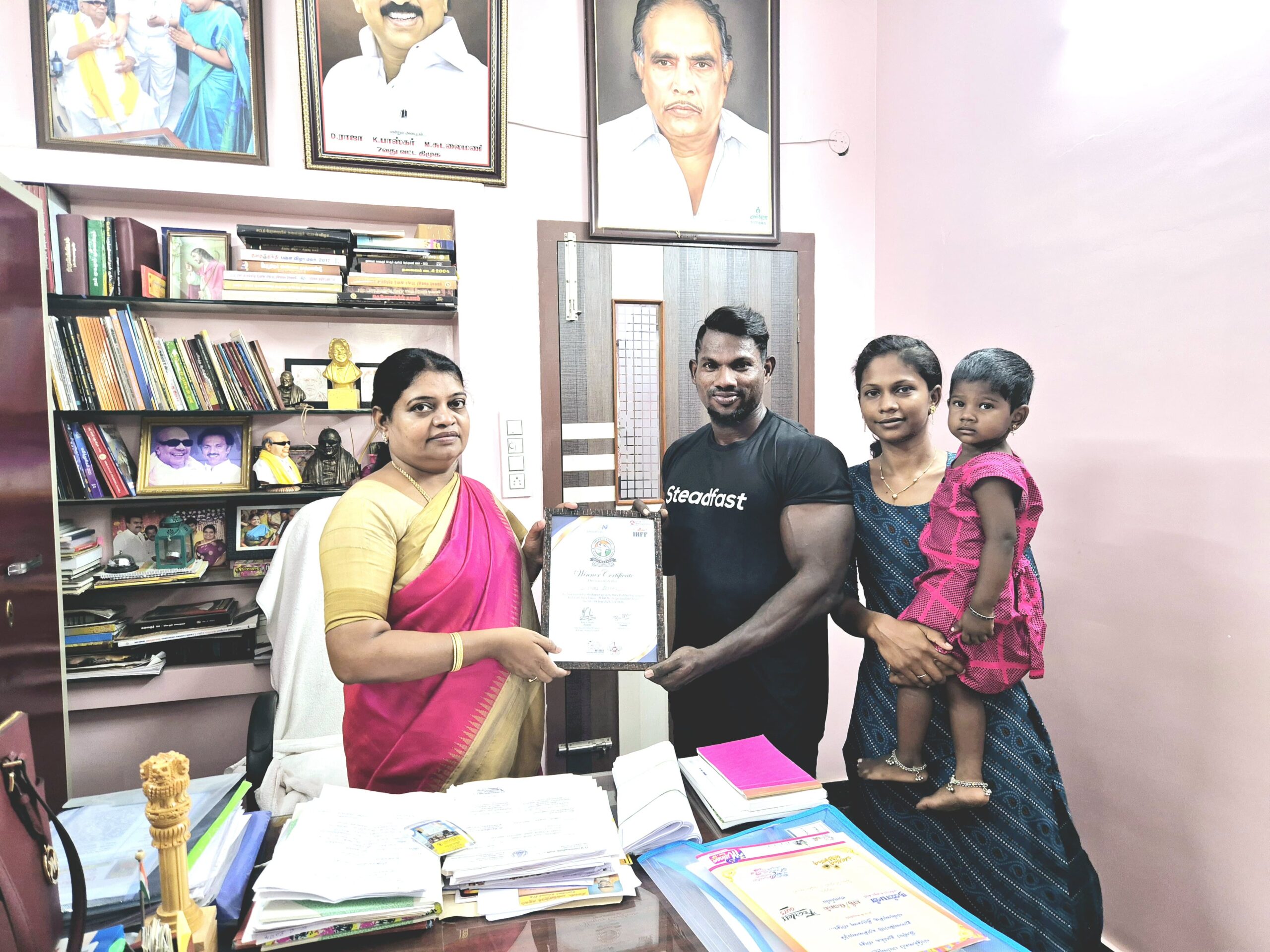 டெல்லியில் நடைபெற்ற Sheru Classic – IFBB Pro League Qualifier Series எனும் சர்வதேச அளவிலான ஆணழகன் போட்டியில் 5வது பரிசு பெற்ற தூத்துக்குடி – அம்பேத்கர் நகரைச் சேர்ந்த தேவசித்தம் என்பவரது மகன் மாரி செல்வம் தூத்துக்குடி வடக்கு மாவட்ட திமுக செயலாளரும் சமூக நலன் மற்றும் மகளிர் உரிமைத் துறை அமைச்சருமான, கீதாஜீவனை சந்தித்து போட்டியில் பங்கு பெற டெல்லி சென்று வர உதவியதற்கு ேபால்பேட்டை அமைச்சர் அலுவலகத்தில் சந்தித்து நன்றி தெரிவித்து வாழ்த்து பெற்றார்.