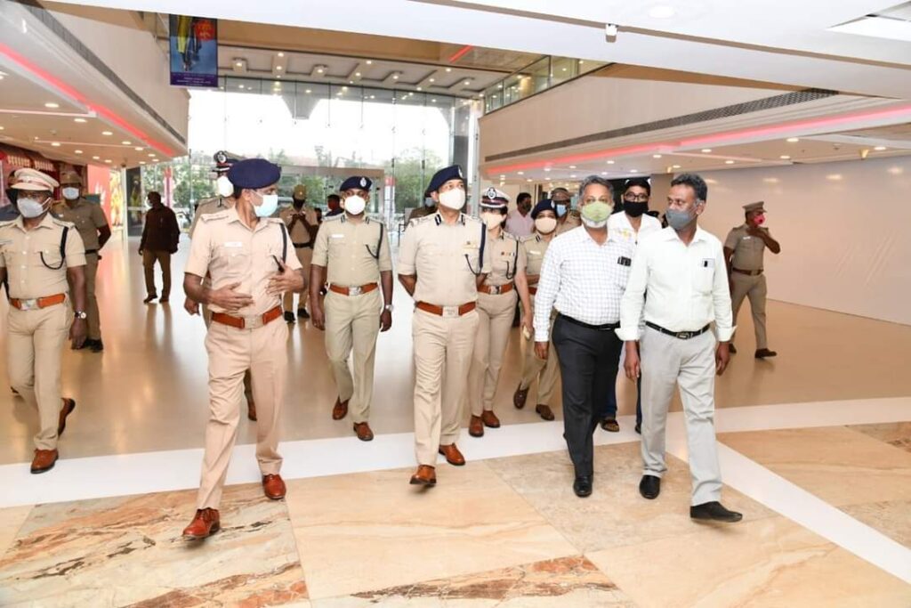 கொரோனா நோய் தடுப்பு நடவடிக்கையாக சென்னை பெருநகர போலீஸ் கமிஷ்னர் மகேஷ்குமார் அகர்வால் கூடுதல் போலீஸ் கமிஷ்னர்களுடன் மற்றும் அதிகாரிகளுடன் மக்கள் கூடும் இடங்கள், வணிக வளாகங்கள், போக்குவரத்து சந்திப்புகளில் தணிக்கை செய்தார் அண்ணா சாலை ஸ்பென்சர் போக்குவரத்து சந்திப்பில் முகக்கவசம் அணியாத வாகன ஓட்டிகளை நிறுத்தி அருகிலுள்ள விழிப்புணர்வு முகாமில் தகுந்த விழிப்புணர்வு அறிவுரை வழங்கி முக கவசங்களை வழங்கினார். முககவசங்கள் வைத்திருந்து அணியாதவர்களுக்கு உரிய அவசியத்தை வலியுறுத்தி முககவசங்களை அணியச் செய்தார். பின்னர் ராயப்பேட்டை மணிக்கூண்டு அருகில் உள்ள எக்ஸ்பிரஸ் அவென்யூ வணிக வளாகத்தில் திடீர் என ஆய்வு செய்து முகக் கவசங்கள் அணியாத பொதுமக்களிடம் முகக்கவசம் அணிதல் மற்றும் கொரோனோ தடுப்பு அறிவுரைகளை வழங்கியும், வணிக நிலைய பொறுப்பாளர்களுக்கு வணிக வளாகங்களில் கொரோனா நோய்த்தடுப்பு வழிகாட்டுதல்களை பராமரிப்பதின் அவசியத்தையும் அறிவுறுத்தினார்.