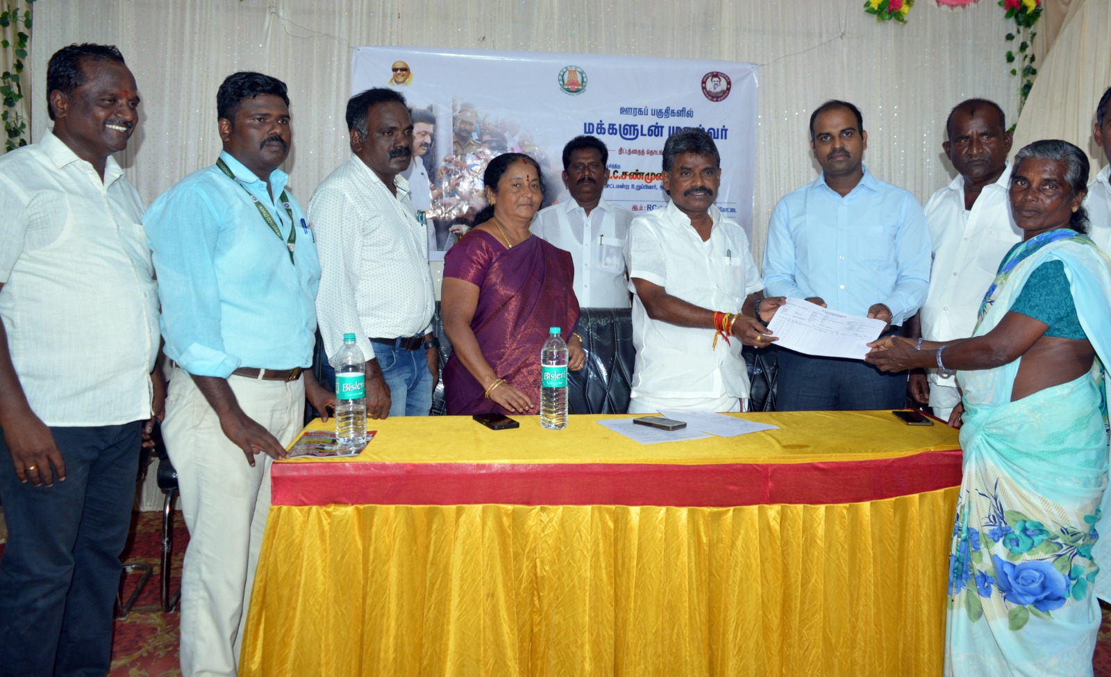 தூத்துக்குடி ஊராட்சி ஒன்றியம் புதுக்கோட்டை ஆர்.சி. மினி மஹாலில் மக்களுடன் முதல்வர் ஊரக வளர்ச்சி மற்றும் ஊராட்சி துறை சார்பில் குமாரகிரி, குலையன்கரிசல், சேர்வைக்காரன்மடம், கூட்டுடன் காடு, முள்ளக்காடு ஆகிய 5 ஊராட்சிப் பகுதி மக்களுக்கு 20க்கும் மேற்பட்ட துறை சார்ந்த அதிகாரிகள் அடங்கிய மக்களுடன் முதல்வர் குறைதீர்க்கும் முகாமிற்கு தூத்துக்குடி கோட்டாட்சியர் பிரபு, ஓட்டப்பிடாரம் எம்எல்ஏ சண்முகையா ஆகியோர் தலைமை வகித்தனர்.