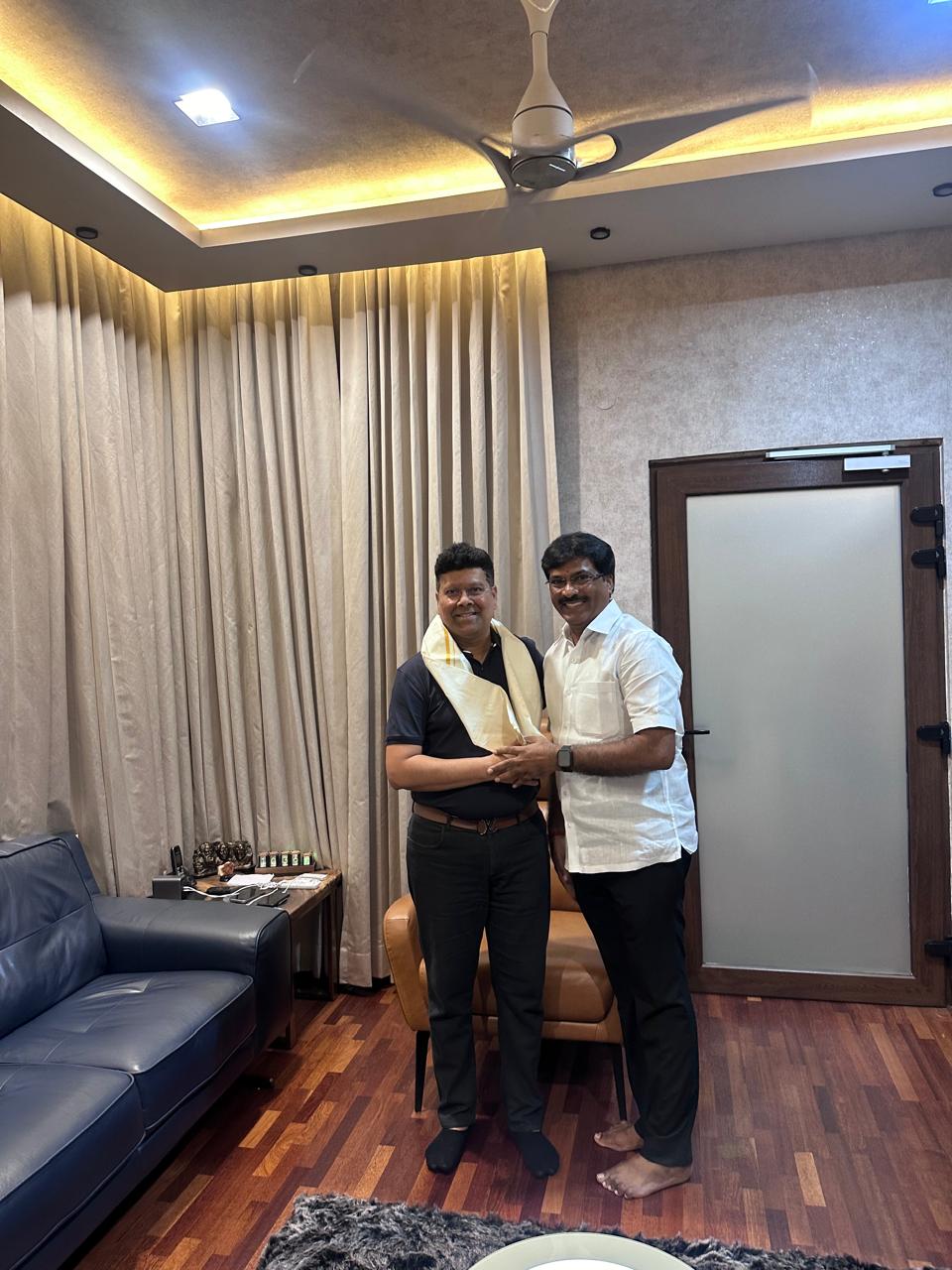 திமுக தலைவரும் தமிழக முதலமைச்சருமான மு.க.ஸ்டாலின் மருமகன் சபாீசன் பிறந்தநாளையொட்டி சென்னையில் அவரது இல்லத்தில் மாநில திமுக நெசவாளர் அணி துணை செயலாளர் வசந்தம் ஜெயக்குமார் நோில் சந்தித்து பிறந்தநாள் வாழ்த்துக்களை தொிவித்தார்.