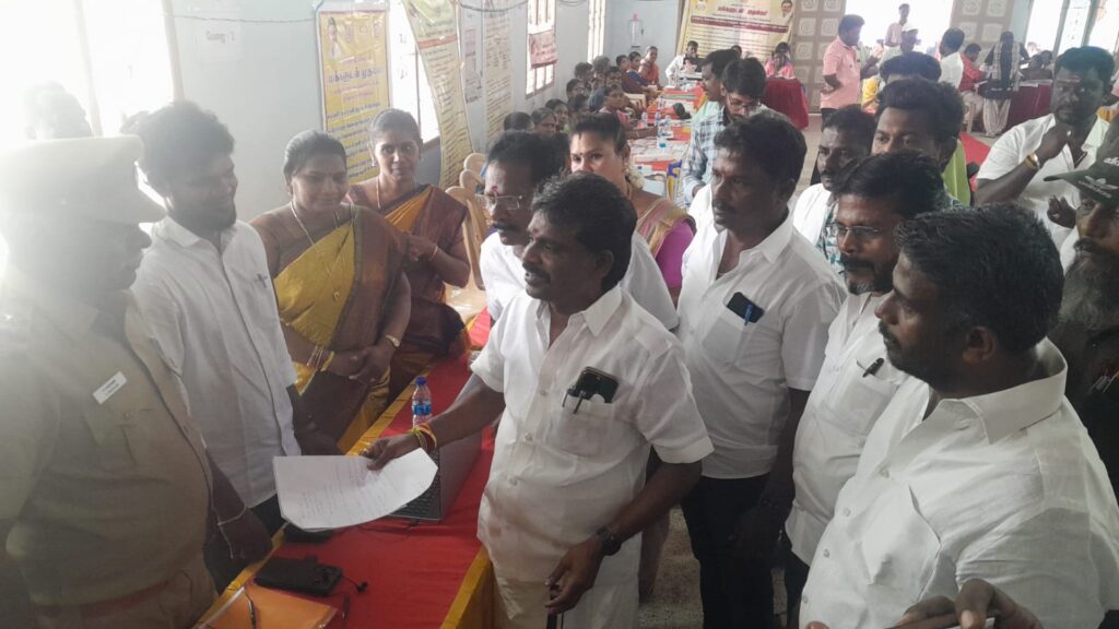 தூத்துக்குடி ஊராட்சி ஒன்றியம் மாப்பிள்ளையூரணி ஊராட்சி தாளமுத்துநகர் சோனா மஹாலில் நடைபெற்ற மக்களுடன் முதல்வர் திட்ட முகாம் ஊரக வளர்ச்சி மற்றும் ஊராட்சி துறை சார்பில் மாப்பிள்ளையூரணி ஊராட்சிப் பகுதி மக்களுக்கு 20க்கும் மேற்பட்ட துறை சார்ந்த அதிகாரிகள் அடங்கிய மக்களுடன் முதல்வர் குறைதீர்க்கும் முகாம் நடைபெற்றது. தூத்துக்குடி கிழக்கு ஒன்றிய செயலாளரும், மாப்பிள்ளையூரணி ஊராட்சி மன்ற தலைவருமான சரவணக்குமார் முன்னிலை வகித்தார்.