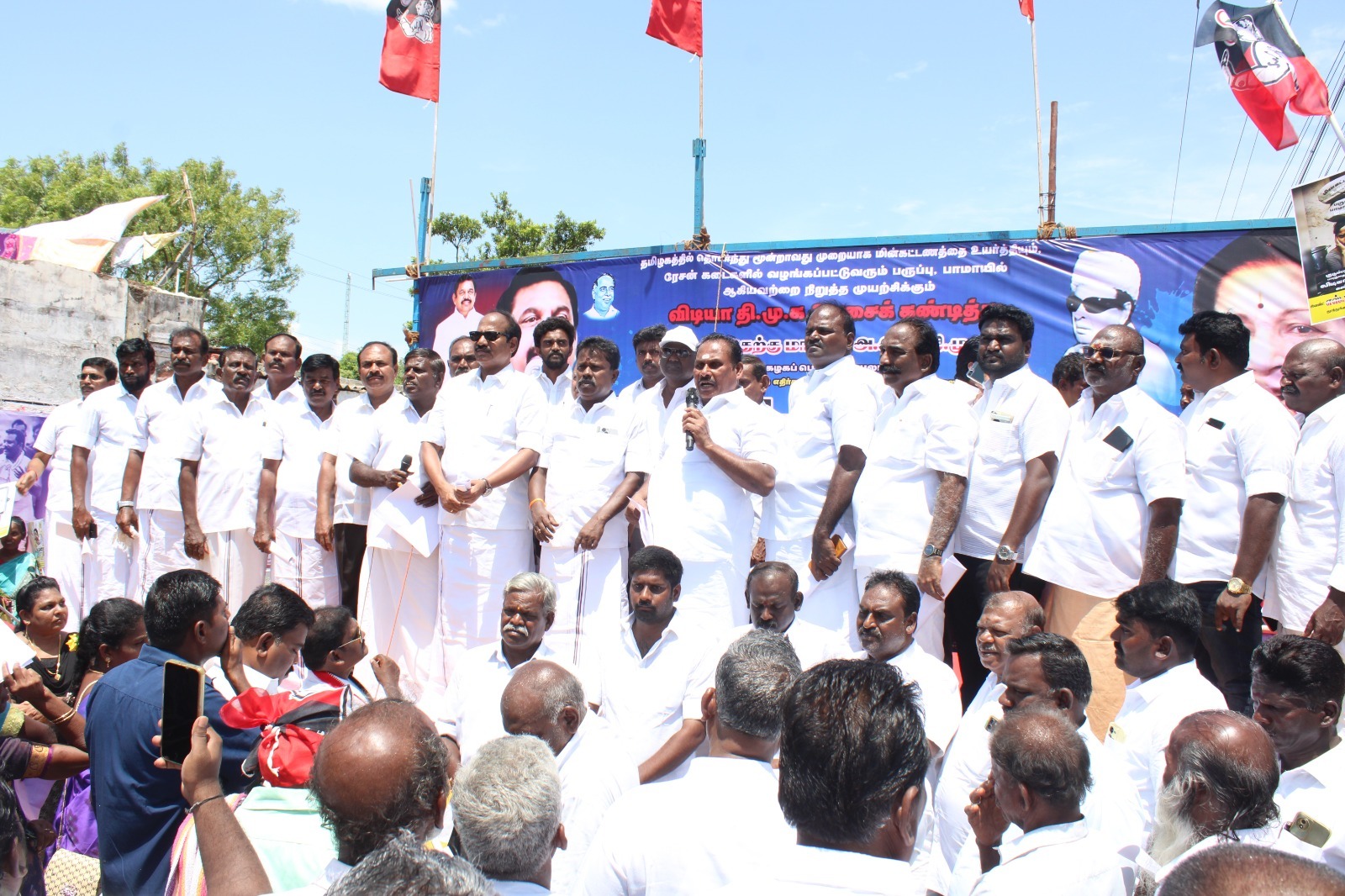 முன்னாள் அமைச்சர் எஸ்.பி.சண்முகநாதன் பேசுகையில் மின் கட்டண உயர்வு, ரேசன் கடையில் வழங்கும் அத்தியாவசிய பொருட்கள், சட்டம் ஒழுங்கு சீர்கேடு, கள்ளச்சாரயம், கஞ்சா உள்ளிட்ட போதை பொருட்கள் நடமாட்டம் போன்ற விவகாரங்களை திமுக அரசு கண்டுகொள்ளாமல் இருப்பதை கண்டித்தும், திமுக அரசின் நிர்வாக சீர்கேட்டினை சுட்டிக்காட்டியும் பேசினார்.