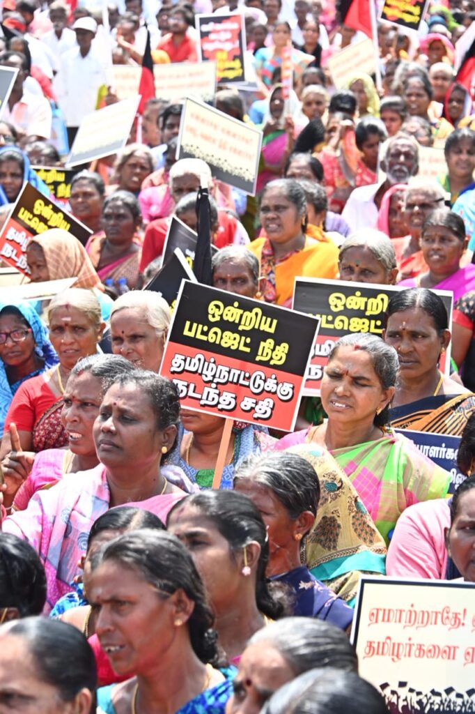 கனிமொழி எம்.பி பேசுகையில் தமிழக முதலமைச்சாின் உத்தரவு படி ஒன்றிய அரசின் அடித்தளத்தை அசைக்கவும் முடியும் நம்மால் என்று போராட்ட குணத்தோடு இங்கு கூடியிருக்கின்ற அனைவரும் ஓரு மித்த குரலோடு பாஜகவினர் காதுகளில் தமிழ்நாட்டில் என்ன குரல் ஓலிக்கின்றது என்று கேட்கும் நிலைதான் உள்ளது. மைனாரிட்டி அரசு மைனாாிட்டி மக்களுக்கு எதிராக செயல்பட்டு வருகிறது. இவர்கள் தொடர்ந்து ஆட்சியை நடத்த வேண்டும் என்பதற்காக பீகார், ஆந்திரா மாநில எம்.பிக்களின் ஆதரவு இருந்தால் தான் இந்த மைனாாிட்டி ஆட்சி நீடிக்கும் என்பதற்காக நிதி ஓதுக்கீடு செய்துள்ளனர். அவர்கள் ஓதுக்கீடு செய்ததை நாங்கள் குறை சொல்ல வில்லை. இந்த இரு மாநிலங்களும் வளர்ச்சியடையவதை போல் மற்ற மாநிலங்களும் வளர்ச்சியடைய வேண்டும். ஏன் இந்த பாரபட்சம் என்பதை தான் நாங்கள் கேட்கிறோம் நிதி நிலை அறிக்கை தாக்கல் செய்த போது நாங்கள் எல்லாம் டெல்லி நாடாளுமன்றத்தில் தான் இருக்கிறோமா அல்லது ஏதாவது ஓரு சட்டமன்றத்தில் அமா்ந்து இருக்கிறோமா என்று தான் எண்ணத்தோன்றியது. ஆளும் கட்சியாக இருந்தாலும் எதிர்கட்சியாக இருந்தாலும் திமுகவின் போராட்ட போர் குணத்தை யாராலும் மாற்ற முடியாது. இந்தியாவில் இரண்டு மாநிலங்கள் மட்டுமே உள்ளதாக நினைத்து கொண்டு ஓன்றிய அரசு பட்ஜெட்டை தயாரித்துள்ளது. ஆனால் முதலமைச்சர் சொன்னது போல பணத்தை அறிவித்து உள்ளனர். ஆனால் வருமா வராதா என்று யாருக்கும் தெரியாது. தமிழகத்தில் எந்த நிதி நெருக்கடி வந்தாலும் பல திட்டங்களை அறிவித்து முதலமைச்சர் அதை செயல்படுத்தி காட்டிக் கொண்டிருக்கிறார். தங்களுக்கு வாக்களிக்காத மக்களை வஞ்சிக்கின்ற அரசாக ஓன்றிய பாஜக ஆட்சி உள்ளது. இந்த பட்ஜெட்டால் ஏழை எளிய கிராமப்புற சாதாரண மக்களுக்கு எந்த பயனும் இல்லை. கார்ப்பரேட் நிறுவனங்களுக்கும் அம்பானி, அதானி போன்ற பெரிய முதலாளிகளுக்கும் மட்டுமே பயனுள்ளதாகவுள்ளது. சாதாரண, சாமானிய கிராமபுற மக்களை பற்றி கவலைபடகூடிய ஆட்சியை விரைவில் உருவாகும் நிலை வரும். தேர்தல் நேரத்தில் தமிழகத்திற்கு வந்த பிரதமர் மோடி 10 முறை வந்துள்ளார். ஆனால் மக்கள் தெளிவான முடிவெடுத்து 40க்கு 40ம் இந்தியா கூட்டணி வெற்றி பெற்றுள்ளது. என்பதற்காவே தமிழகத்தை புறக்கனிக்கிறார். எங்கிருந்து எல்லா வகையிலும் ஜிஎஸ்டி வாி உள்பட பல வகையிலும் பணத்தை பெற்றுக்கொள்ளும் ஓன்றிய அரசு அதில் உள்ள பங்களிப்பை மாநில அரசுக்கு கொடுக்க மறுப்பது ஏன். கடந்த காலத்தில் சென்னை தூத்துக்குடி போன்ற இடங்களில் புயல் மற்றும் வௌ்ளம் ஏற்பட்ட காலங்களில் பாதிப்படைந்த பகுதி மக்களுக்கு தேவையான உதவித்தொைக கேட்டதற்கு ஓன்றிய அரசு இதுவரை ஏதுவும் வழங்கவ