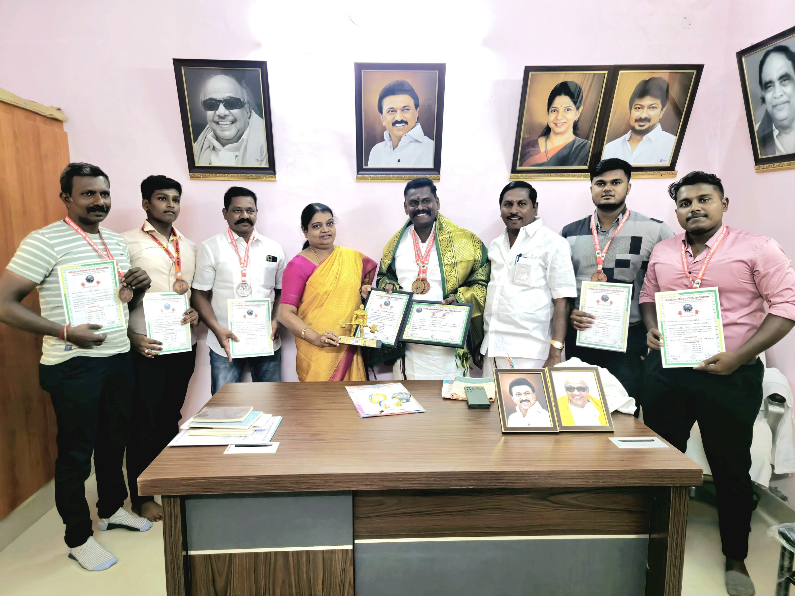 உடன் பயிற்சியாளர் கோவில்பட்டியைச் சேர்ந்த மங்கள்ராஜ் மற்றும் கோவில்பட்டி மத்திய ஒன்றிய திமுக செயலாளர் பீக்கிலிப்பட்டி முருகேசன் ஆகியோர் உடனிருந்தனர்.
