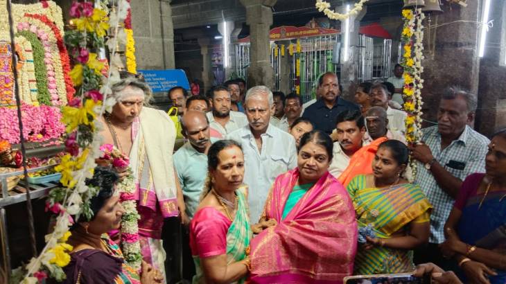 அதனை தொடர்ந்து இரவு நடைபெற்ற 216 திருவிளக்கு பூஜையை வடக்கு மாவட்ட திமுக செயலாளரும் சமூக நலன் மற்றும் மகளிர் உரிமை துறை அமைச்சருமான கீதாஜீவன் சிறப்பு அழைப்பாளராக கலந்து கொண்டு திருவிளக்கு பூஜையை தீபம் ஏற்றி தொடங்கி வைத்தார். முன்னதாக விநாயகர், சங்கரராமேஸ்வரர், பாகம்பிாியாள், சன்னதியில் தாிசனம் செய்தார்.