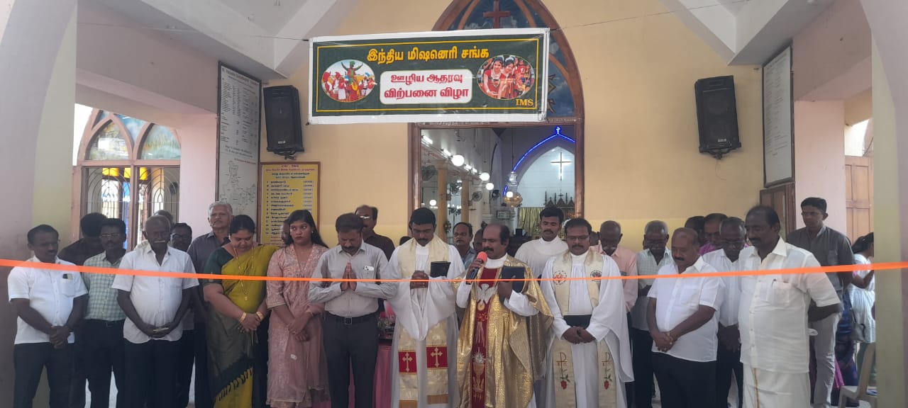 இந்த மிஷினரி ஊழியத்தில் 2500 க்கும் மேற்பட்டோர் இந்தியா முழுவதும் பணியாற்றி வருகின்றனர் இவர்களுடைய தேவைகளை சந்திக்கும் வண்ணமாகவும் புதிய ஆலயங்கள், புதிய கல்விக்கூடங்கள், மருத்துவமனைகள் கட்டுவதற்கு தேவையான நிதி ஆதாரத்தை பெருக்குவதற்காகவும் வருடம் தோறும் தூத்துக்குடி பரிசுத்த பேட்ரிக்ஸ் இணைப் பேராலயத்தில் இந்திய மிஷனரி சங்க ஆதரவு விற்பனை விழா நடத்தப்படுவது வழக்கம் இந்த விழாவில் சபை மக்கள் தங்களது வீடுகளுக்கு தேவையான உணவு பண்டங்கள், உணவு பதார்த்தங்கள், குளிர்பானங்கள், அலங்காரப் பொருட்கள், பழம் காய்கறி வகைகள் மற்றும் வீட்டுக்கு தேவையான அனைத்து பொருட்களையும் அதிக விலை கொடுத்து வாங்கி செல்வது வழக்கம் இந்த விற்பனை விழாவின் போது கிடைக்கக்கூடிய பணம் அனைத்தும் மிஷனரிகள் ஊழியத்திற்கு வழங்கப்படுகின்றது என்ற காரணத்தினால் சபை மக்கள் உற்சாகமாக பொருட்கள் வாங்கி செல்வார்கள் கடந்த வருடம் 43 லட்ச ரூபாய் இந்த விற்பனை மூலம் வசூல் செய்து இந்திய மிஷனரி சங்கத்திற்கு கொடுத்துள்ள நிலையில் இந்த வருடம் 50 லட்ச ரூபாய் வரை இந்த விற்பனை மூலம் நிதி திரட்டி மிஷினரிகள் ஊழியத்திற்கு அவர்கள் தேவைகள் சிந்திக்கப்படுவதற்காக நிதி வழங்கப்பட உள்ளதாக ஆலய குருவானவர் செல்வின் துரை தெரிவித்தார். சுமார் ஆயிரம் ரூபாய் மதிப்பிலான பழங்கள், உணவு பண்டங்கள், வைக்கப்பட்டிருந்த ஆசீர்வாத தட்டு 36,000 ரூபாய்க்கும் 32 ஆயிரம் ரூபாய்க்கும் சபை மக்கள் ஆர்வமுடன் ஏலம் எடுத்தனர்.
