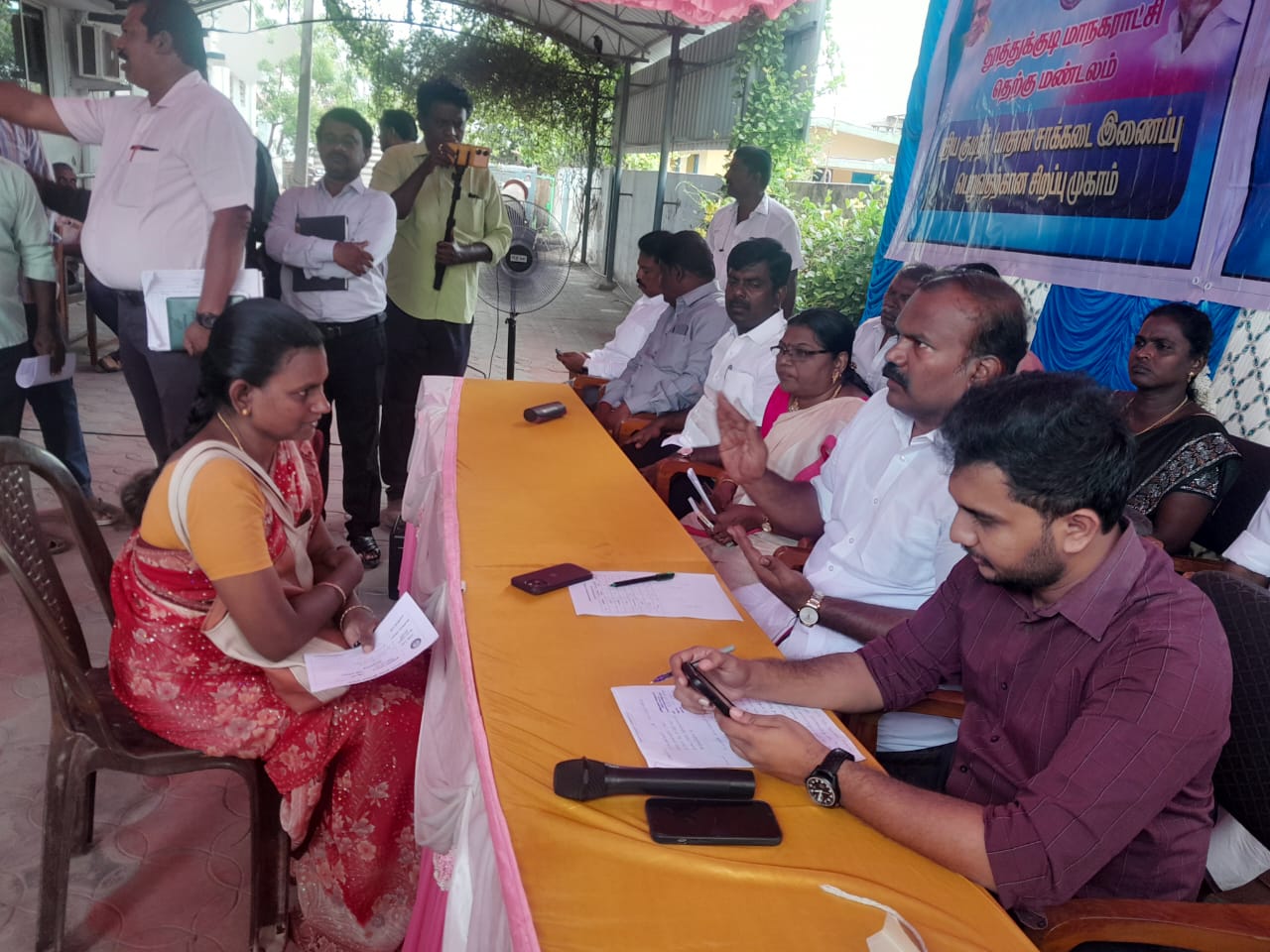 தூத்துக்குடி மாநகராட்சி கூட்டத்தில் ஒவ்வொரு புதன்கிழமையில் மண்டல அலுவலகத்தில் அப்பகுதிக்குட்பட்ட பொதுமக்களின் கோாிக்கைகளை நிறைவேற்றும் வகையில் கூட்டம் நடத்தப்படும் என்று முடிவு செய்யப்பட்டதின் அடிப்படையில் தெற்கு மண்டலத்திற்குட்பட்ட ஜெஎஸ்நகாில் உள்ள தெற்கு மண்டல அலுவலகத்தில் நடைபெற்ற பொதுமக்கள் குறைதீர்க்கும் முகாமிற்கு மேயர் ஜெகன் பொியசாமி தலைமை வகித்தார். மாநகராட்சி ஆணையர் மதுபாலன், துணை மேயா் ஜெனிட்டா, ஆகியோர் முன்னிலை வகித்தனர். தெற்கு மண்டலத்தலைவர் வக்கீல் பாலகுருசாமி, வரவேற்புரையாற்்றினார்.