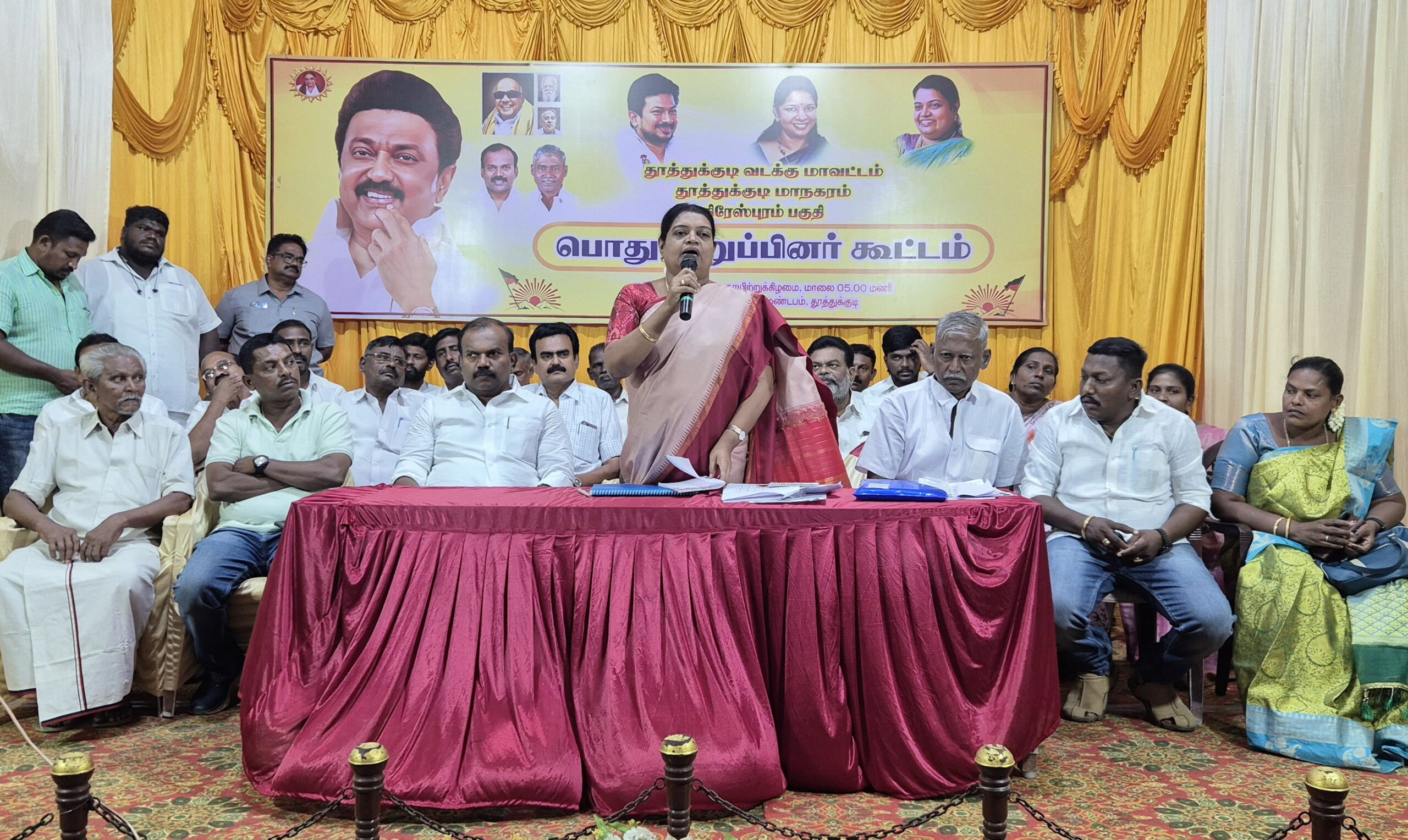 வடக்கு மாவட்ட திமுக செயலாளரும் சமூகநலன் மற்றும் மகளிர் உாிமைத்துறை அமைச்சருமான கீதாஜீவன் பேசுகையில் தமிழக முதலமைச்சர் தளபதியார் உத்தரவிற்கிணங்க நடைபெறுகின்ற இந்த கூட்டத்தில் 23 அணிகளை சேர்ந்த பொது உறுப்பினர்கள் எல்லோரும் கலந்து கொண்டு பணியாற்ற வேண்டிய இடமாகும். கடந்த நாடாளுமன்ற தேர்தலில் 2வது முறையாக போட்டியிட்டு அதிகப்படியான வாக்கு வித்தியாசத்தில் கனிமொழி எம்.பி வெற்றி பெறுவதற்கு களப்பனியாற்றியது நீங்கள் தான் அந்த பணி தொடர்ந்து 2026ல் தொடர வேண்டும். என்பதற்காகத்தான் தளபதியார் ஓராண்டுகளுக்கு முன்பு அதற்கான வியூகங்கள் வகுப்பட்டு பணியாற்ற அறிவுறுத்தியுள்ளாா். திமுக குடும்பத்தை சார்ந்த நாம் தளபதியார் நிர்ணயித்துள்ள 200 தொகுதி இலக்கை கடந்து வெற்றி பெற வேண்டும். 1949ல் அண்ணாவால் தொடங்கப்பட்ட இயக்கம் பவள விழா ஆண்டில் இருக்கிறோம் எல்லோருக்கும் எல்லாம் கிடைக்க வேண்டும் ஜாதி அடிப்படையில் இட ஓதுக்கீடு சட்டம் வேலைவாய்ப்பு என அனைத்து தரப்பினருக்கும் வாழ்வாதாரத்தை உயர்த்தி வாழ்வு கொடுத்தது. நம்முடைய இயக்கம் தான். எல்லோரும் சமம் என்ற நிலை தொடர வேண்டும் கருத்து வேறுபாடுகள் இல்லாமல் உழைக்க வேண்டும் கலைஞாின் மறைவிற்கு பிறகு திமுக தலைவராக பொறுப்பேற்ற முதலமைச்சர் தளபதியார் 7ம் ஆண்டில் அடியெடுத்து வைத்துள்ளார். அந்த பதவியை ஏற்ற பின் நடைபெற்ற அனைத்து தேர்தல்களிலும் தன்னுடைய உழைப்பால் தொடர் வெற்றியை பெற்றுள்ளார். இதே வெற்றி 2026லும் வெற்றி பெற்று தமிழக முதலமைச்சராக தளபதியார் இரண்டாவது முறையாக பதவி ஏற்க வேண்டும். அதற்காகதான் எல்லா பகுதிகளிலும் இந்த கூட்டம் நடைபெறுகிறது. சட்டத்தையே மாற்று வேன் என்று கூறிய மோடியை சட்டப்புத்தகத்தை வணங்கி பதவி ஏற்பதற்கு காரணமாக அமைந்தவர் நம் தளபதியாா். பீஹார் ஆந்திரா முதலமைச்சர் தயவால் மோடி ஆட்சி நடக்கிறது இது நீண்ட காலம் நீடிக்காது. பூத் கமிட்டி முதல் வாக்களார்கள் சேர்ப்பு நீக்கல் வரை முறையாக பணியாற்றுங்கள். இலக்கை நிர்ணயித்து அனைவாிடமும் நடப்பாக பழகி வாக்கு வங்கியை உயர்த்த வேண்டும். மக்கள் நம்மோடு இருக்கிறார்கள் அதை பயன்படுத்தி கொள்ள வெண்டும். 2024ல் நடைபெற்ற நாடாளுமன்ற தோ்தலை காட்டிலும் 2026 தேர்தல் நமக்கு முக்கியம் முதியோர், கல்லூாி மாணவர்கள், மகளிர் உதவித்தொகை என பல சாதனைகளை செய்துள்ளோம். இதை யெல்லாம் வீடு வீடாக எடுத்துச்சென்று பணியாற்றுங்கள் என்று பேசினார்.