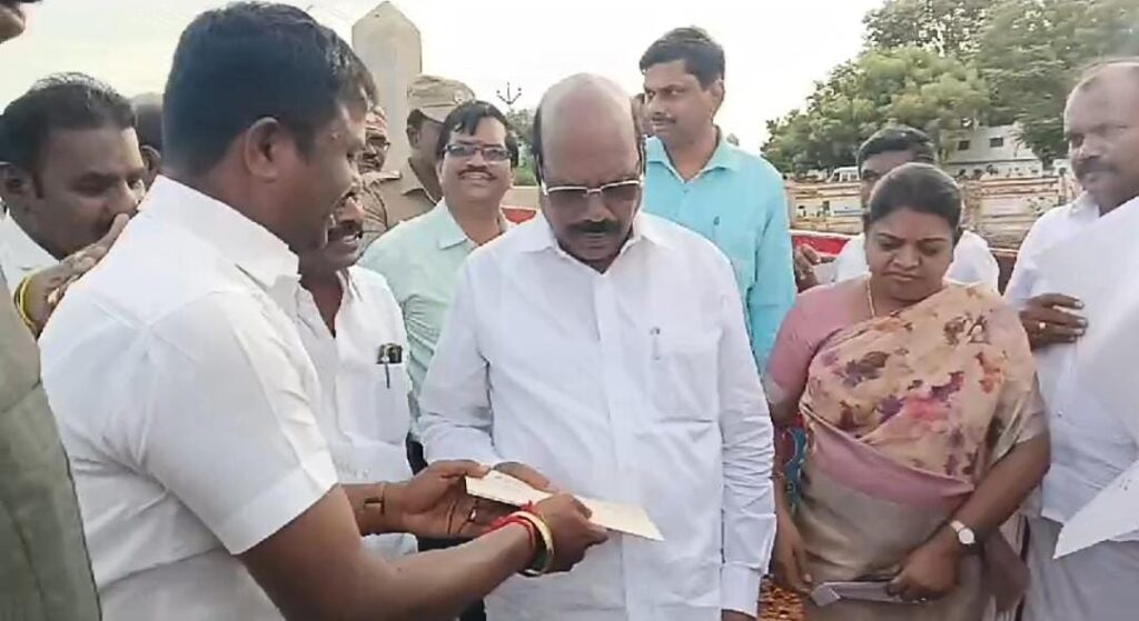 மாப்பிள்ளையூரணி ஊராட்சி பகுதிகளில் ஆய்வு பணி மேற்கொள்ள வருகை தந்த அமைச்சர் எ.வ.வேலு, மற்றும் அமைச்சர் கீதா ஜீவன் ஆகியோருக்கு திமுக கிழக்கு ஒன்றிய செயலாளரும் பஞ். தலைவருமான சரவணக்குமார் தலைமையில் திமுக நிர்வாகிகள் பொன்னாடை போர்த்தி வரவேற்றனர். அதன் பிறகு மாப்பிள்ளையூரணி பகுதியில் புதிதாக கட்டப்பட்டு வரும் பாலங்கள் மற்றும் சாலை பணிகளை அமைச்சர் எ.வ. வேலு ஆய்வு மேற்கொண்டார். அதனைத் தொடர்ந்து அமைச்சர் எ.வ. வேலுவிடம் திமுக கிழக்கு ஒன்றிய செயலாளரும் பஞ். தலைவருமான சரவணக்குமார் கோரிக்கை மனு அளித்தார்.