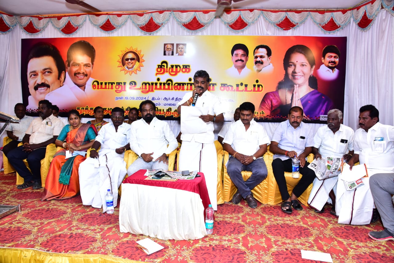 சண்முகையா எம்.எல்.ஏ பேசுகையில் தமிழக முதலமைச்சர் ஆணைக்கிணங்க தெற்கு மாவட்ட திமுக செயலாளரும் மீன்வளம் மீனவர்நலன் மற்றும் கால்நடை பராமாிப்பு துறை அமைச்சர் அனிதா ராதாகிருஷ்ணன் வழிகாட்டுதலின்படி தமிழக முதலமைச்சர் ஆட்சியில் தமிழர்கள் நலன், மாநில வளர்ச்சி உள்ளிட்ட அத்தனை திட்டங்களையும் எல்லா துறைகளிலும் நிறைவேற்றுவதால் இந்தியாவில் நம்பர் ஓன் மாநிலமாகவும் நம்பர் ஓன் முதலமைச்சருமாகவும் தளபதியார் விளங்குகிறார். கழக வளர்ச்சி பணிதான் எல்ேலாருக்கும் முக்கியம் முதலமைச்சாின் சாதனைகளை ஓவ்வொரு வீடாக கொண்டு போய் சேர்க்க வேண்டும் மகளிர்களுக்கு இலவச பேருந்து பயணம் 1000 உாிமைத்தொகை கல்லூாி மாணவ மாணவிகளுக்கு 1000 கல்வி உதவித்தொகை பள்ளியில் காலை உணவு திட்டம் என எல்லா வகையிலும் சாதனை தொடர்கிறது. முதலமைச்சர் வௌிநாடு சென்று பல முதலீடுகளை தமிழகத்திற்கு கொண்டு வருவதின் மூலம் வேலைவாய்ப்பு கிடைக்கின்றது, விளையாட்டு மேம்பாட்டு துறை அமைச்சர் உதயநிதி ஸ்டாலினும் தமிழ்நாட்டு நலனில் அக்கறையுடன் பணியாற்றுகிறார். அமைச்சர் அனிதா ராதாகிருஷ்ணன் கனிமொழி எம்.பி எல்லோரும் மக்களுக்கான பணிகளை தொடர்ந்து செய்து வருகின்றனர். தெற்கு மாவட்டத்திற்குட்பட்ட திருச்செந்தூர் ஸ்ரீவைகுண்டம் ஓட்டப்பிடாரம் ஆகிய ெதாகுதிகளிலும் வெற்றி உறுதி. முதலமைச்சர் 200 தொகுதியை நிர்ணயம் செய்துள்ளார். இந்தியாவிற்கே வழிகாட்டும் முதலமைச்சராக நம்முடைய தளபதியார் விளங்குகிறாா். உங்களை நம்பிதான் முதலமைச்சர் பல திட்டங்களை திட்டமிட்டு அறிவிப்பு செய்கிறாா். திராவிட மாடல் ஆட்சியில் எல்ேலாருக்கும் எல்லா நன்மைகளும் கிடைக்கின்றன. நாம் அனைவரும் திட்டமிட்டு முறையாக பணிகளை மேற்கொண்டால் 234 தொகுதிகளிலும் வெற்றி பெறலாம் அதற்கு அனைவரும் சபதம் ஏற்கவேண்டும். என்று பேசினார்.