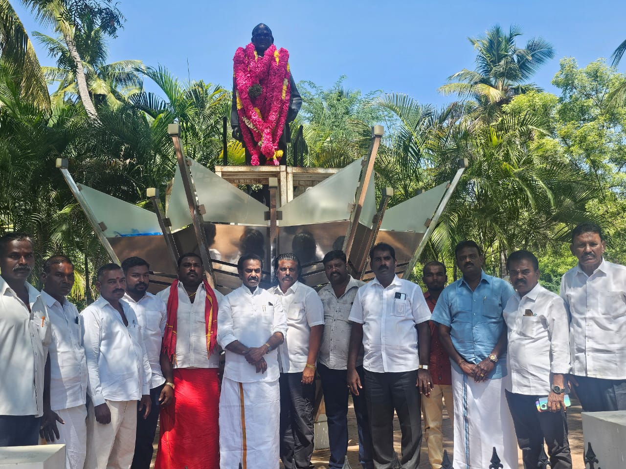 என் ஆர் தனபாலன் தலைமையில் பெருந்தலைவர் மக்கள் கட்சி நிர்வாகிகள் மாலை அணிவித்து மரியாதை செலுத்தினர்.