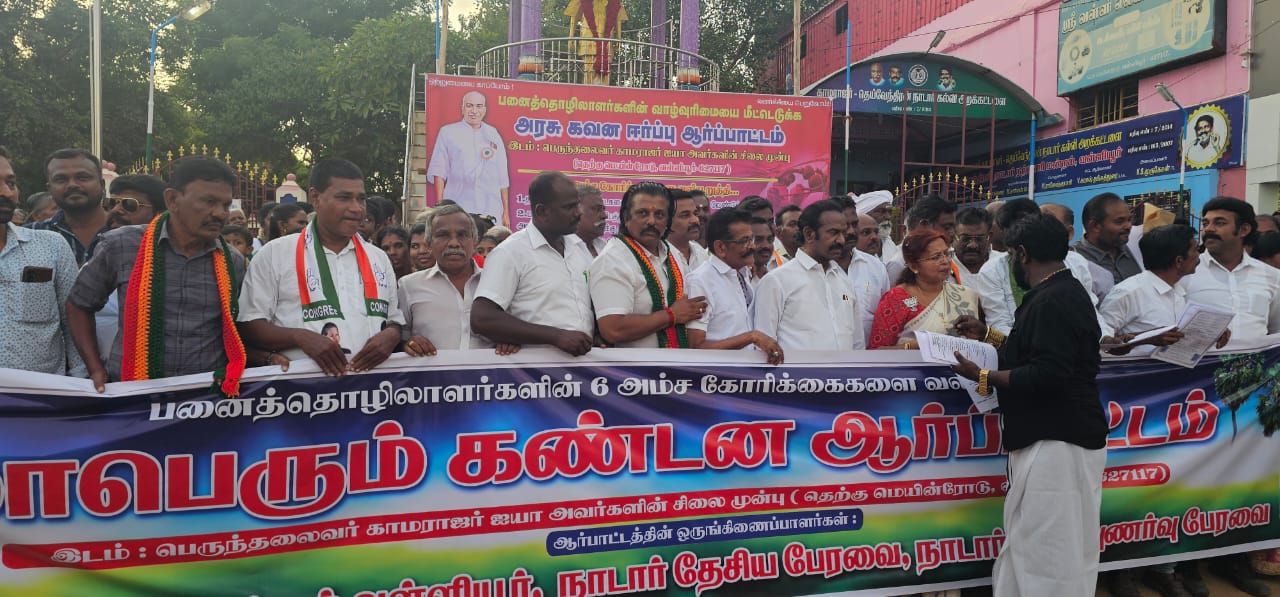 பெருந்தலைவர் மக்கள் கட்சி மற்றும் தமிழ்நாடு நாடார் பேரவை சார்பில் மாபெரும் ஆர்ப்பாட்டம் நடைபெற்றது. இந்த ஆர்ப்பாட்டத்தில்
