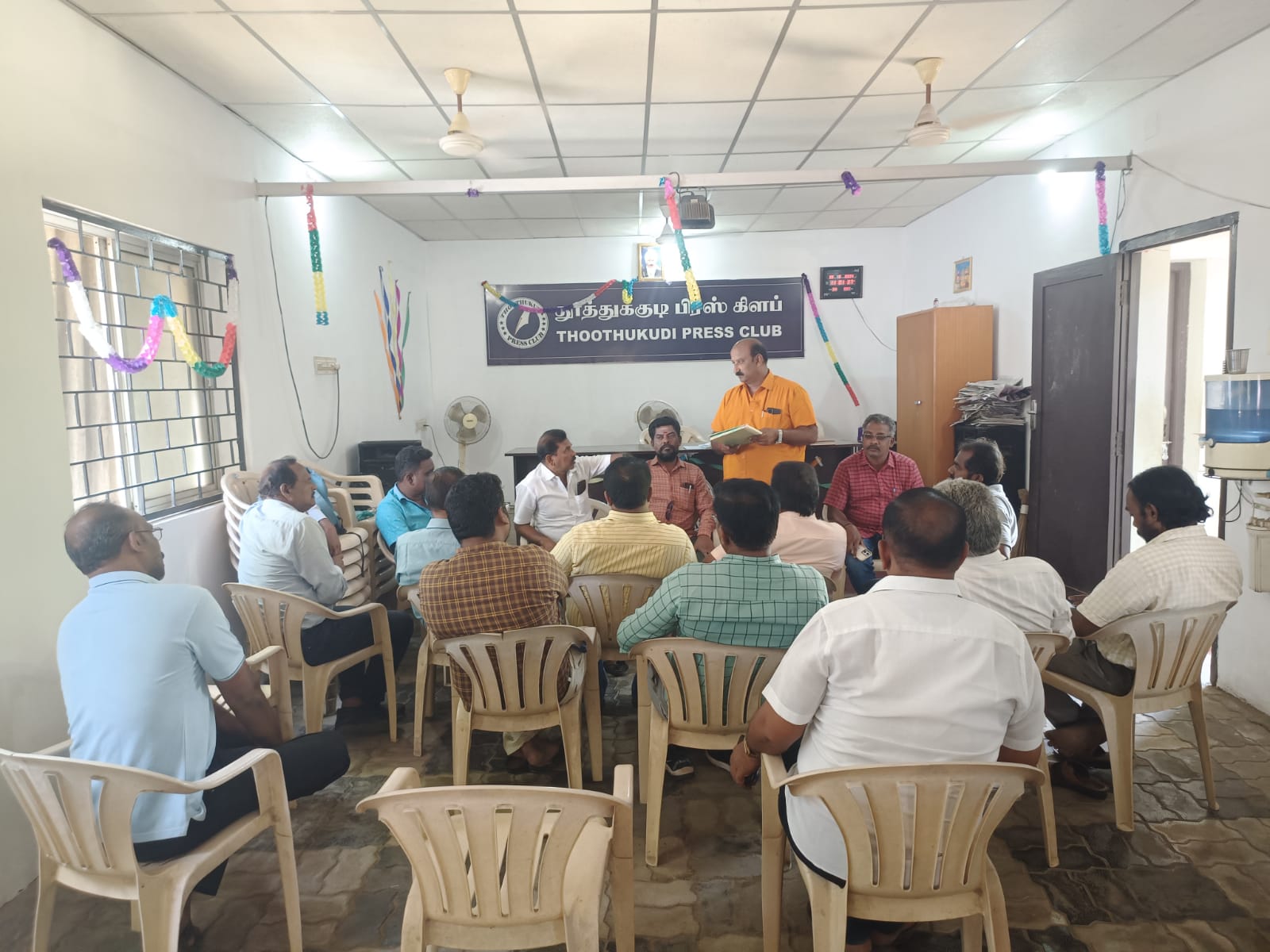 தூத்துக்குடி பிரஸ் கிளப் 2024 – 2026 ஆம் ஆண்டிற்கு புதிதாக தேர்ந்தெடுக்கப்பட்ட நிர்வாகத்தின் முதல் செயற்குழு கூட்டம் தமிழ்ச் சாலையில் உள்ள பிரஸ் கிளப் அலுவலகத்தில் இன்று காலை 10:35 மணியளவில் நடைபெற்றது.
