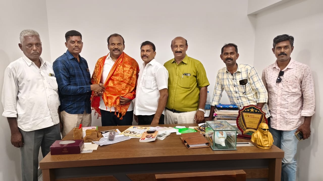 திமுக தலைமை செயற்குழு உறுப்பினரும் மாநகராட்சி மேயருமான ஜெகன் பெரியசாமியை தூத்துக்குடி பிரஸ் கிளப் தலைவர் சண்முகசுந்தரம் தலைமையில் புதிதாக தேர்ந்தெடுக்கப்பட்ட சங்க நிர்வாகிகள் போல்பேட்டை முகாம் அலுவலகத்தில் வைத்து மரியாதை நிமித்தமாக சந்தித்து தலைவர் சண்முகசுந்தரம் பொன்னாடை போர்த்தினார்.